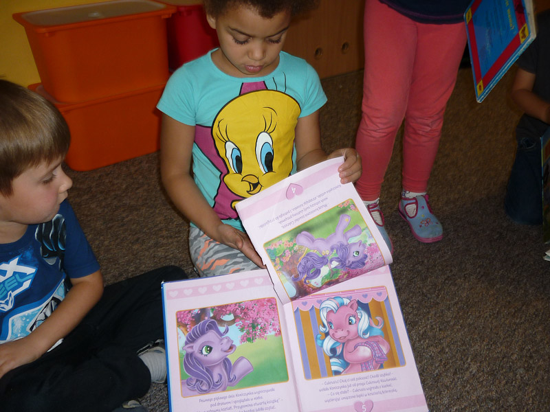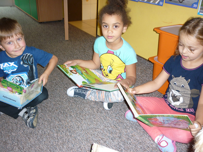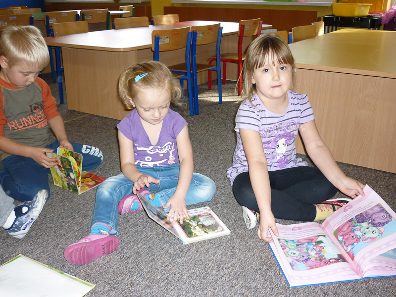 W przedszkolu w tym roku szkolnym kontynuujemy realizację autorskiego projektu rozwijania zainteresowań czytelniczych pt „Bajki, bajeczki, czytajmy dzieciom”. W ramach działań 1.10 Kwiatuszki wysłuchały wiersza pt „Skarga książki”, oglądały ilustracje w książkach, uczyły się jak dbać o książki. Wspólnie założyliśmy w sali Kącik Pięknej Książki, a następnie stworzyliśmy własne kolorowane książeczki. Zapraszamy Rodziców i wszystkich chętnych do czytania dzieciom bajek.