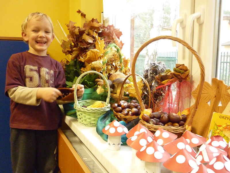 Kwiatuszki lubią i poznają jesień, z tej okazji dzięki pomocy Rodziców powstał kacik przyrody jesiennej. Codziennie wzbogacany przez rodziców o okazy przyniesione z jesiennych spacerów.