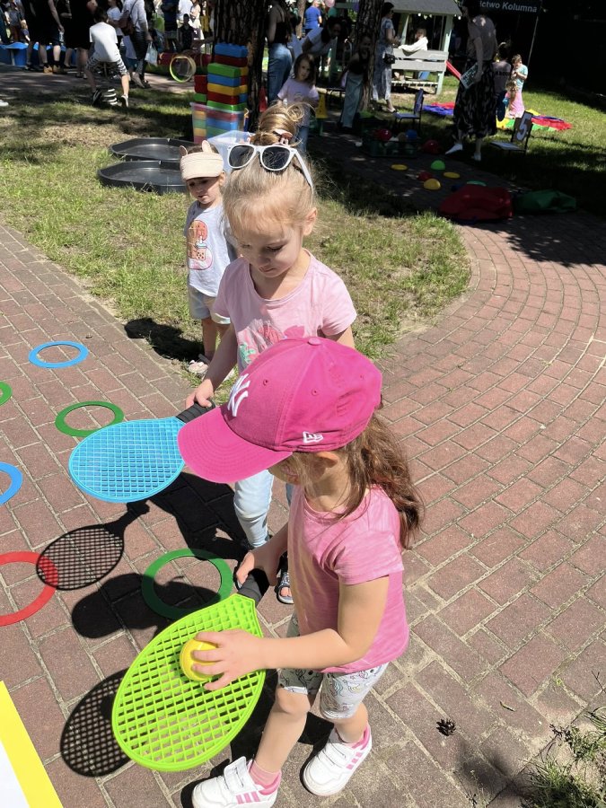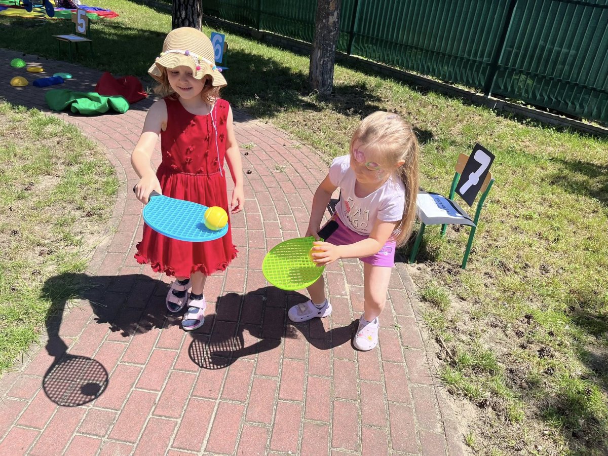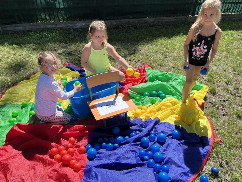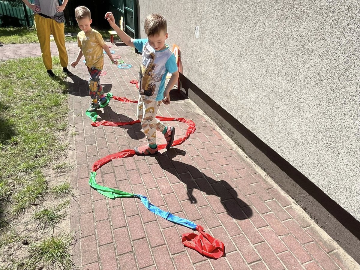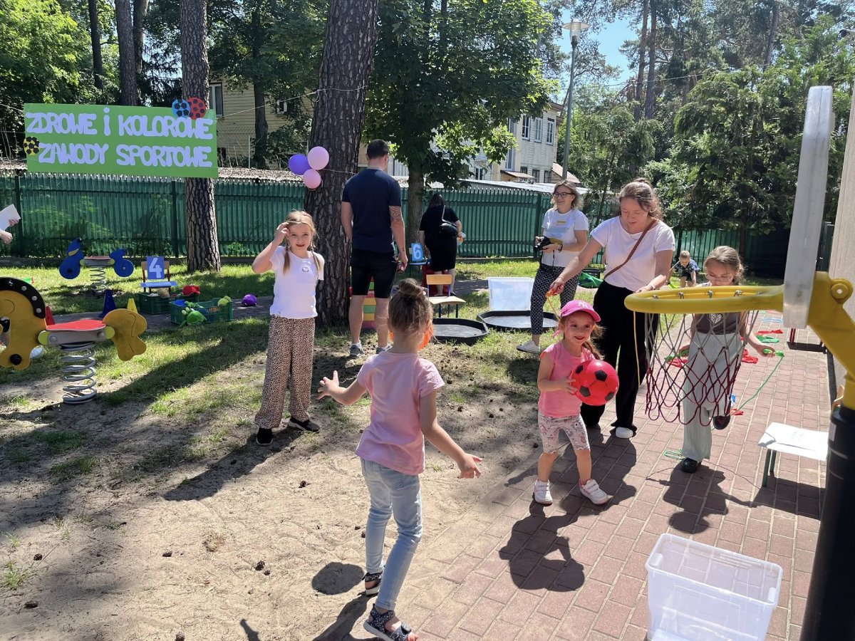 14 -06-2025 podczas Festynu Rodzinnego zroganizowane zostały dla wszystkkich przedszkolaków Zawody Sportowe z kolorowymi zadaniami sportowymi w ramach porgramu „Rusz się zdrowo na sportowo”.