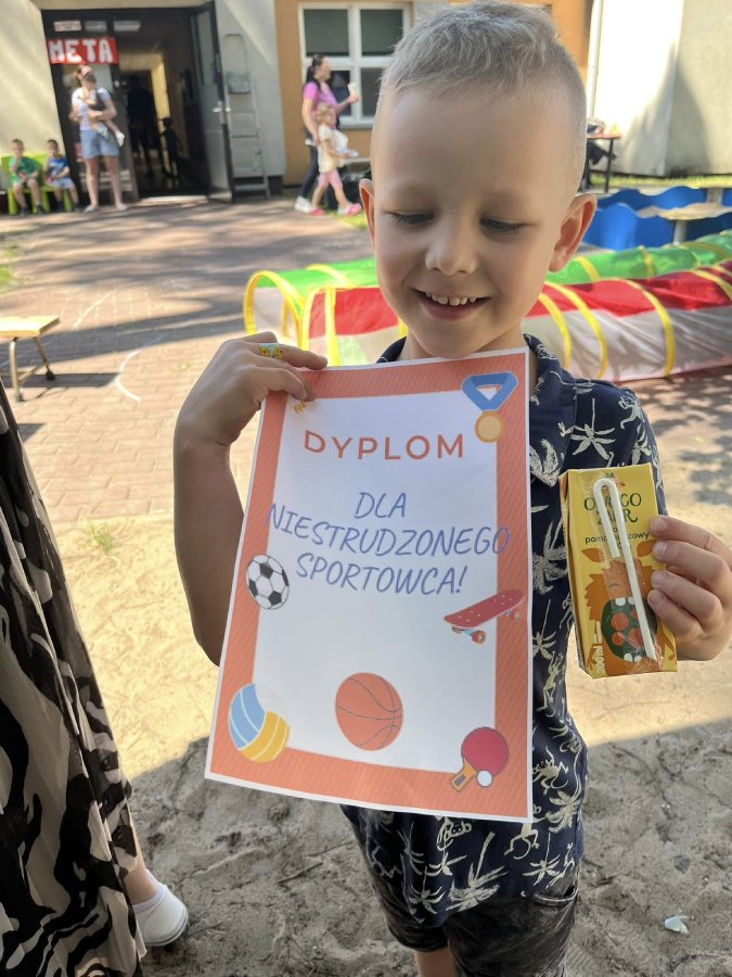 Zadaniem było pokonanie toru przeszkód i przejście 10 zadań sportowych. Nagrodą były Dyplomy niestrudzonego sportowca, zdrowe soki owocowe, odznaki sportowca.