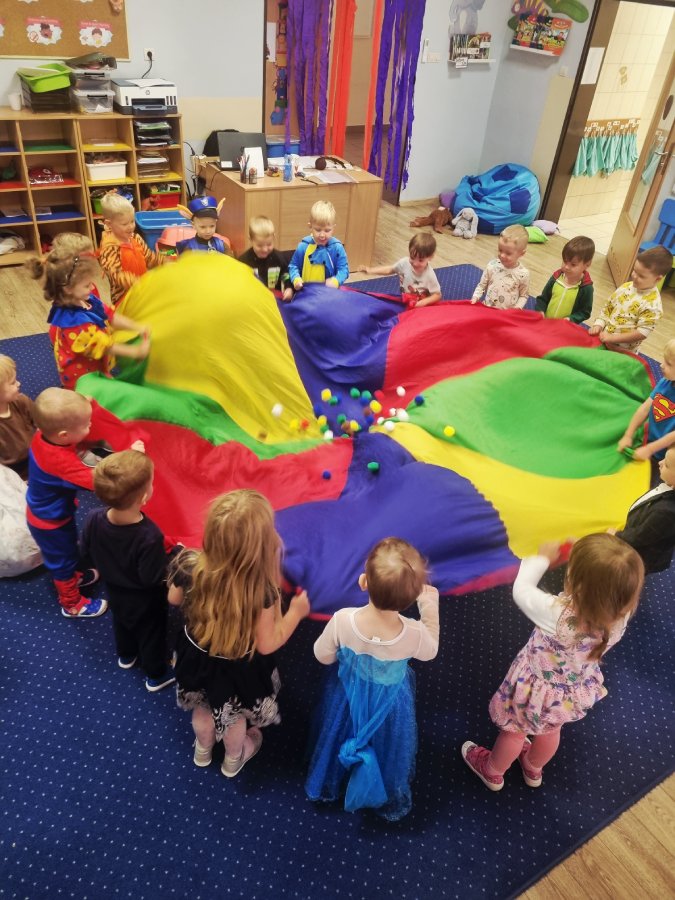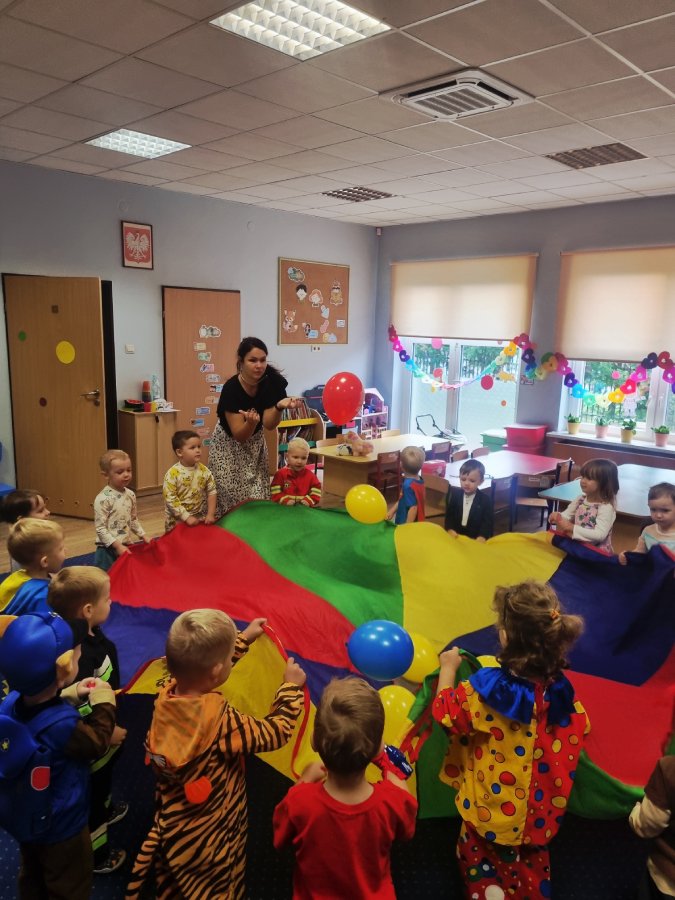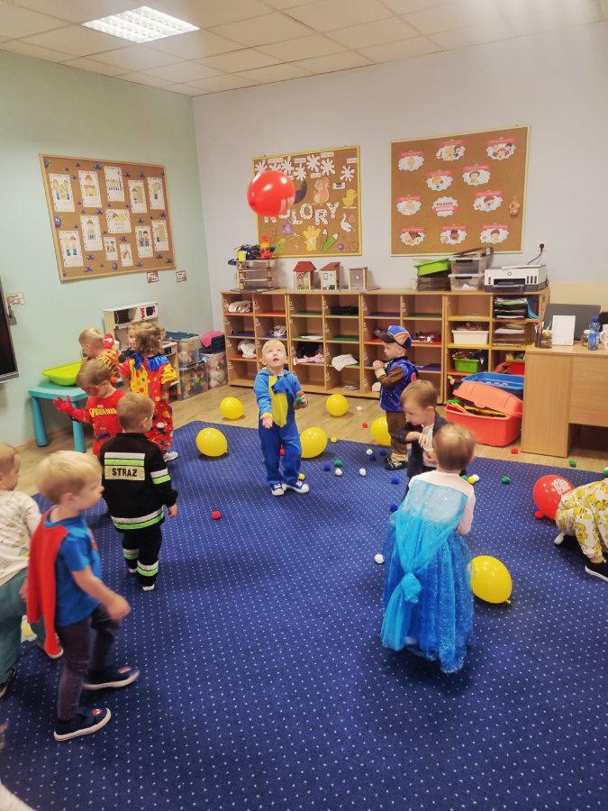 Podczas balu nie zabrakło wesołych zabaw przy muzyce, tańców w parach i wspólnych konkursów. Maluszki z ogromnym zaangażowaniem uczestniczyły w każdym punkcie programu, pokazując, że potrafią bawić się razem, dzielić radością i wspierać swoich kolegów.