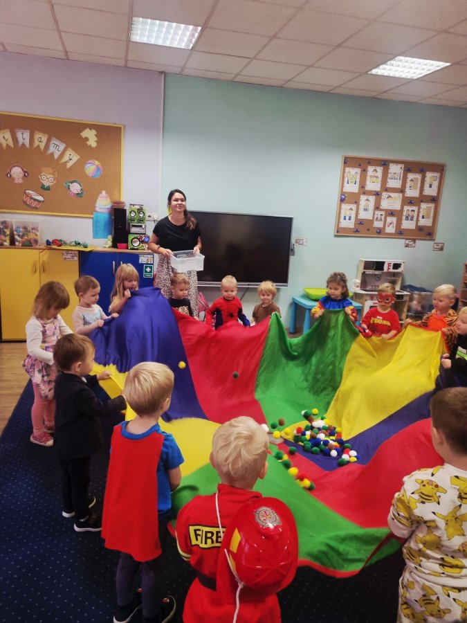W naszym przedszkolu odbył się długo wyczekiwany Bal Przedszkolaka! Tego dnia sala grupy „Jagódki” zamieniła się w kolorową krainę pełną muzyki, tańca i uśmiechów. Dzieci przyszły ubrane w przepiękne stroje – można było spotkać księżniczki, superbohaterów, zwierzątka i bajkowe postacie.