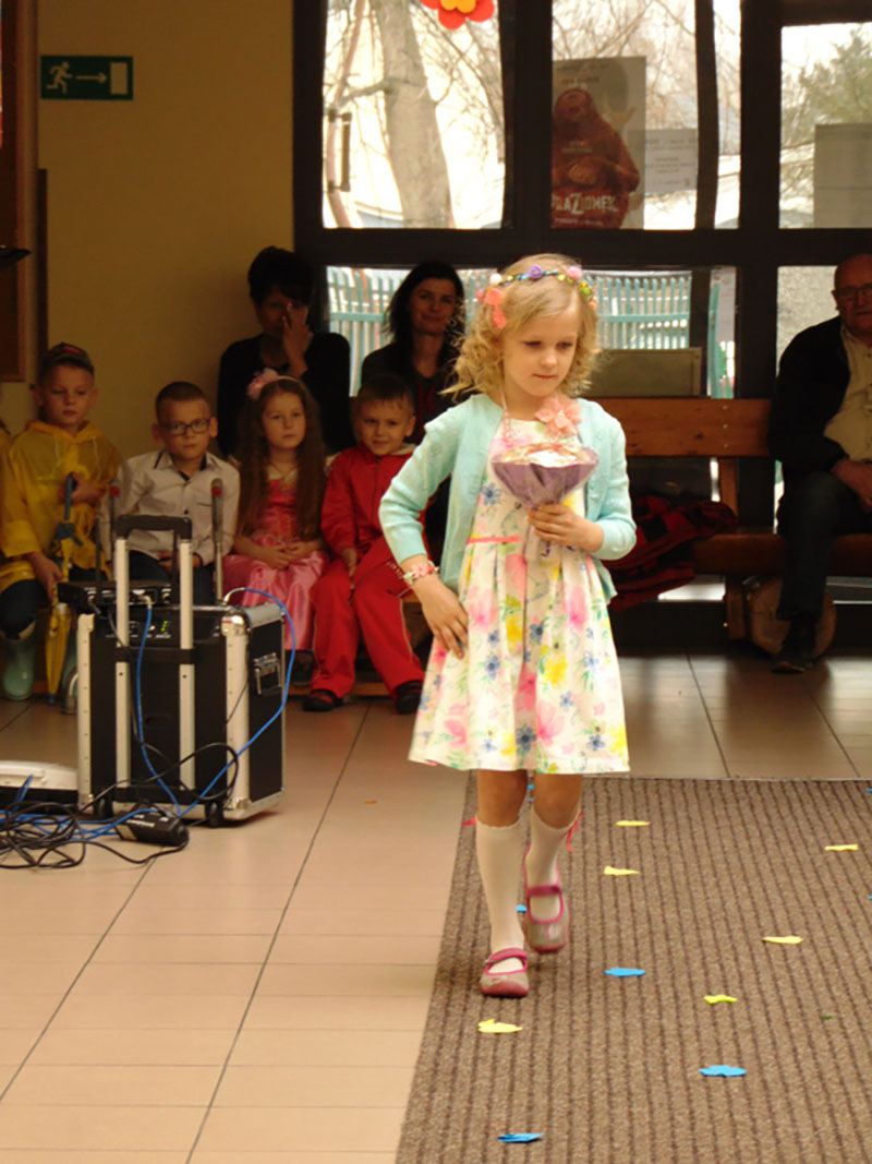 Śledząc trendy w modzie grupa Wiewióreczki postanowiła w tym roku uczcić nadejście wiosny Pokazem Mody Wiosennej. Pokaz odbył się 21 marca na holu przedszkola, który w tym dniu zamienił się w Salon Modowy. Był wybieg ozdobiony kwiatami, błyskające flesze aparatu, piękna wiosenna dekoracja i oczywiście Modele i Modelki, prezentujący niepowtarzalną kolekcję. Kreacje przygotowano według własnych pomysłów. Wszystkie były wyjątkowe, a przede wszystkim kolorowe i oryginalne. Znając najnowsze trendy mody możemy już dziś ,,odmienić swoją szafę” i cierpliwie czekać na piękne słońce.