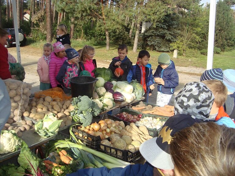 W dniu 5.10.2018r. dzieci z grupy "Muchomorki" uczestniczyły w wycieczce na ryneczek w Kolumnie. Oglądały różne owoce, warzywa, nazywały je porównywały wielkości i ilości. Na koniec zakupiły marchewkę, którą z apetytem (umytą i obraną) zjadły w przedszkolu na drugie śniadanie.