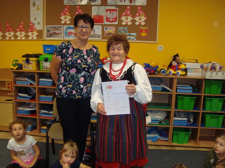 W ramach realizacji przedszkolnego programu „Moja mała Ojczyzna” – edukacji regionalnej w dniu 25 października 2018r. odbyło się spotkanie z paniami: Aliną Kosmalą i Anną Jurek z Koła Gospodyń Wiejskich z Mogilna Małego. W spotkaniu uczestniczyły dwie grupy: „Muchomorki” i „Biedronki.”