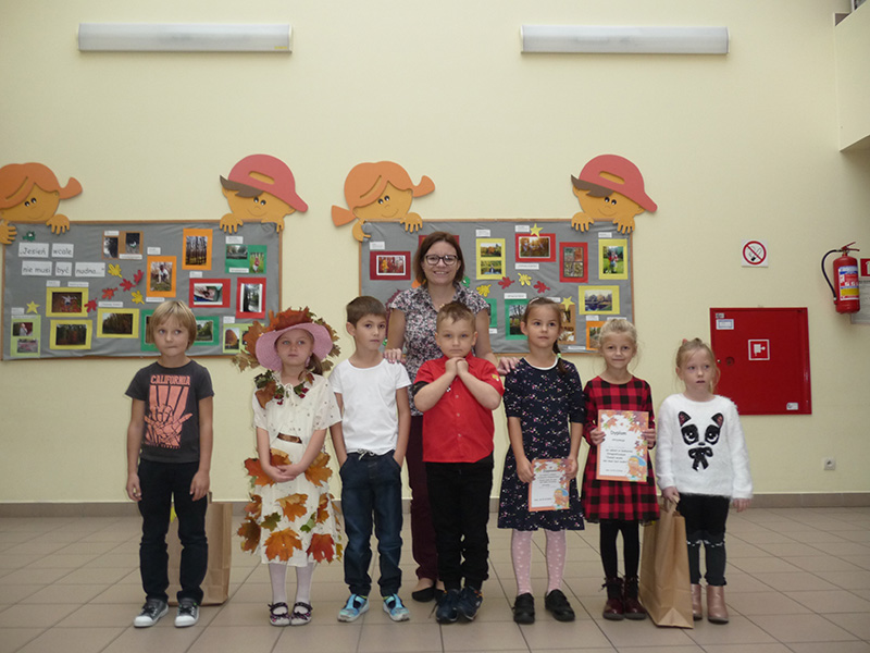 W czwartek 25 października odbyło się rozstrzygnięcie międzyprzedszkolnego konkursu fotograficznego "Jesień wcale nie musi być nudna". Wzięło w nim udział 16 dzieci 5 i 6-letnich z przedszkoli w Łasku. Po krótkiej części artystycznej przygotowanej przez grupę Wiewióreczki zostały wręczone nagrody. Choć wszystkie dostarczone zdjęcia były interesujące i przedstawiały złotą polską jesień, pierwsze miejsce w postaci sesji zdjęciowej wykonanej przez fotografa pana Jakuba Krzysztofiaka przyznano Nikoli z Przedszkola Publicznego Nr 5. Wyróżnienia przypadły Jeremiaszowi z PP Nr 6, Lenie z PP Nr 1 oraz Hani z PP Nr 5. Nagrody zostały ufundowane przez Nadleśnictwo Kolumna oraz Kino Tomi w Pabianicach, za co serdecznie dziękujemy. Po wręczeniu nagród zaprosiliśmy naszych gości na mały poczęstunek i wspólna zabawę.
