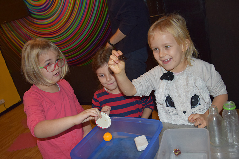 Warsztaty te to specjalnie opracowane spotkanie, skierowane do przedszkolaków. Dzieci obserwowały doświadczenia pokazowe, miały też możliwość ich samodzielnego wykonywania, co sprawiało im niezwykłą radość. Bowiem bezpośrednie doświadczanie otoczenia przyrodniczego za pomocą kilku zmysłów wywołuje u dziecka zdziwienie i nasuwa wiele pytań. Zaspokojeniu tych potrzeb służą zabawy badawcze i eksperymenty. To dzięki nim dziecko ma możliwość zrozumienia wszystkimi zmysłami wielu związków zachodzących na ziemi, w powietrzu i wodzie.