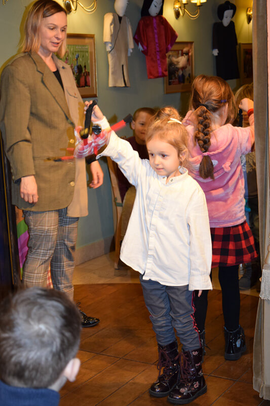 Przedstawienie dzięki zabawnym kostiumom i nieoczekiwanym przeobrażeniom aktorów, ukazuje, jak łatwo można dać się nabrać innym ludziom, którzy często udają kogoś innego. W rozśpiewanym spektaklu nie tylko spotkaliśmy postaci z baśni, ale także poznamy braci Grimm i klimat epoki w jakiej tworzyli. Przez chwile nawet sami mogliśmy zostać aktorami. A pyszna herbatka i ciacho dodatkowo umiliły nam czas.