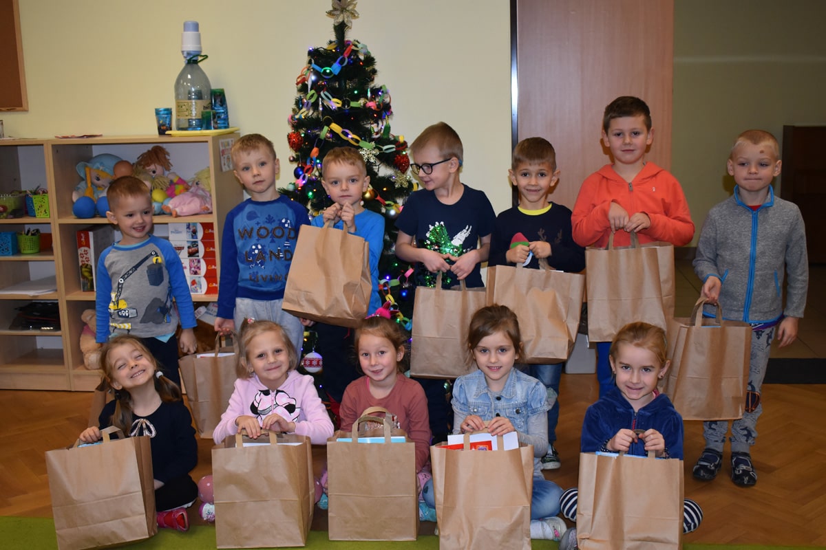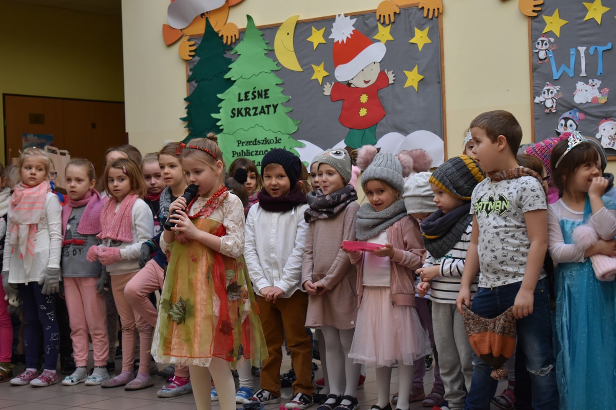 Dzieci z grup Biedronki, Muchomorki i Wiewiórki zaprezentowały wiersze i piosenki nawiązujące do tematu spotkania, które miało na celu przybliżenie dzieciom cech odchodzącej jesieni i nadchodzącej zimy. Wszyscy wspaniale bawiliśmy się z nadzieją, że zimowy klimat przedstawienia przyniesie nam na święta dużo bieli. Zwieńczeniem uroczystości było rozstrzygnięcie konkursu pt: „Ludowa Ozdoba Choinkowa”, na którą wpłynęło bardzo dużo prac wykonanych przez dzieci i ich rodziców. Cieszymy się, że tradycja świąt Bożego Narodzenia jest kultywowana w naszym przedszkolu.