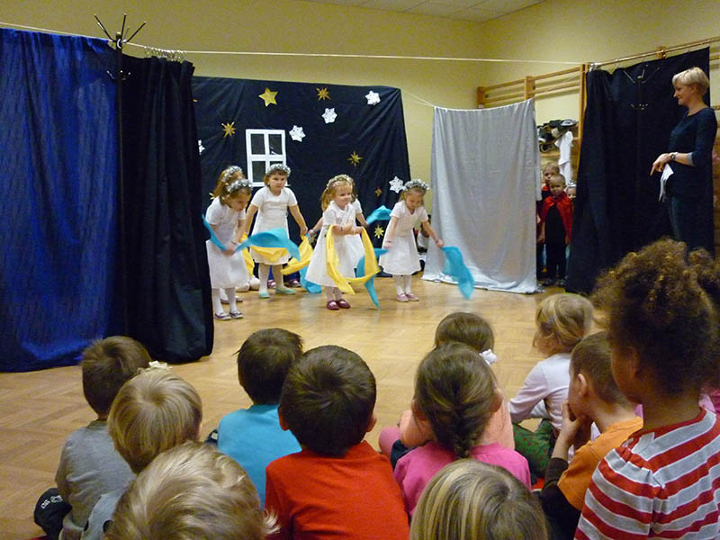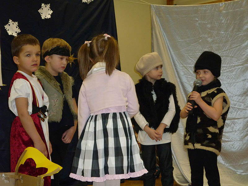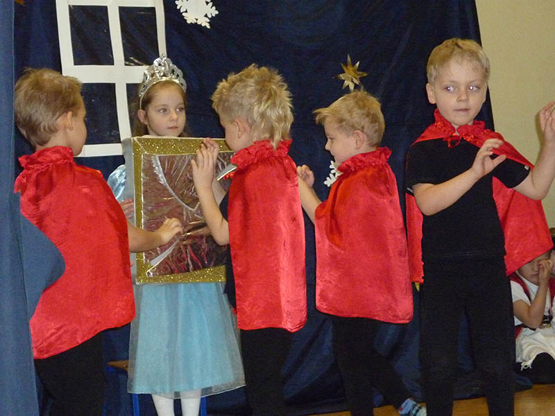 15 stycznia dzięki pomocy i zaangażowaniu jednej z mam grupy Misie, pani Justyny Bednarek, odwiedziły nas Przedszkolaki z Dobronia z grupy Jagódki z przepięknym przedstawieniem dla całego przedszkola pt. Królowa Śniegu. Występ z niezwykłą muzyką zaskoczył wszystkie Leśne Skrzaty ogromnym przygotowaniem małych aktorów. Były bardzo ciekawe oryginalne rekwizyty i układy taneczne. Jagódki wystąpiły w licznych scenach, zmieniając często stroje i rekwizyty.