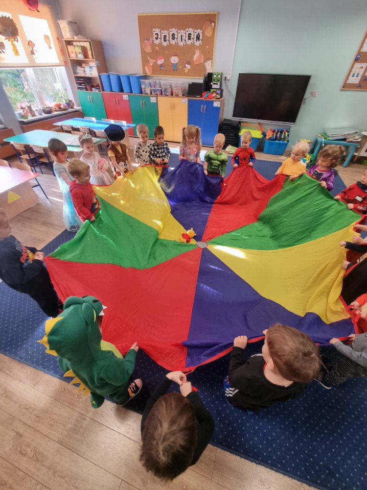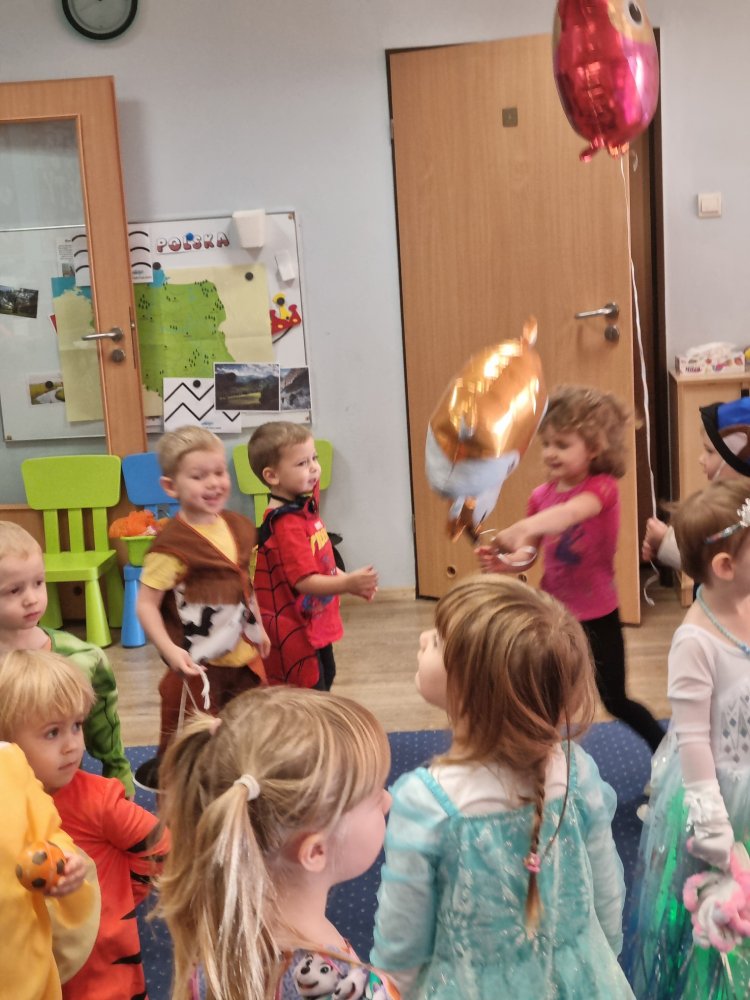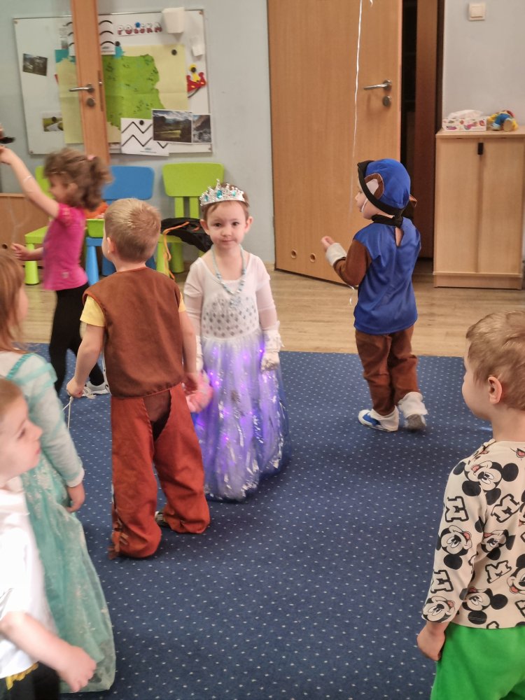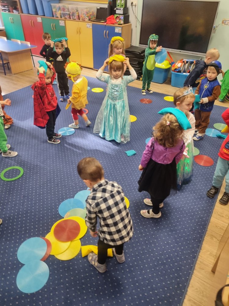 Dzieci z dumą prezentowały swoje kolorowe stroje i z radością uczestniczyły w zabawach tanecznych, konkursach i wspólnych tańcach. Nie zabrakło też bajkowych zagadek, wspólnego śpiewania i pysznego poczęstunku. Bal był nie tylko świetną zabawą, ale też doskonałą okazją, by rozwijać wyobraźnię, odwagę i integrację grupy. To był naprawdę magiczny dzień, pełen uśmiechów i radości!