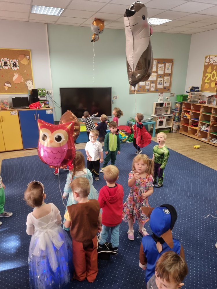 W naszym przedszkolu odbył się wyjątkowy dzień – Bal Postaci z Bajek! Już od rana w sali Maluszków panowała prawdziwie bajkowa atmosfera. W progu witały nas wróżki, księżniczki, superbohaterowie, smoki, rycerze, misie, zwierzątka i wielu innych ulubionych bohaterów dziecięcych opowieści.