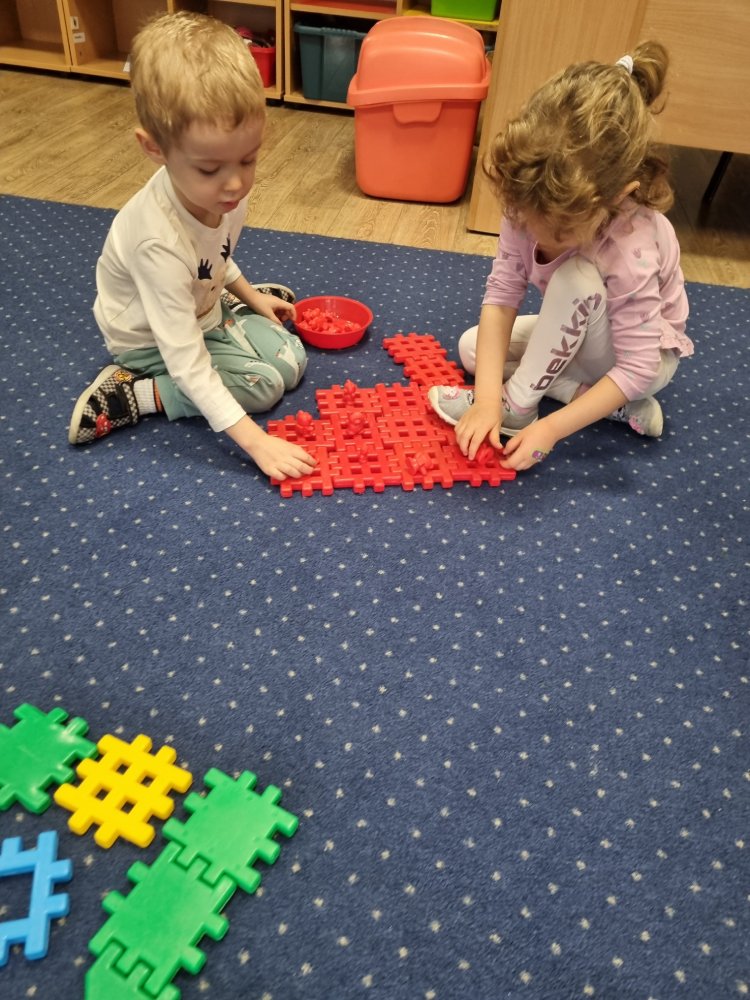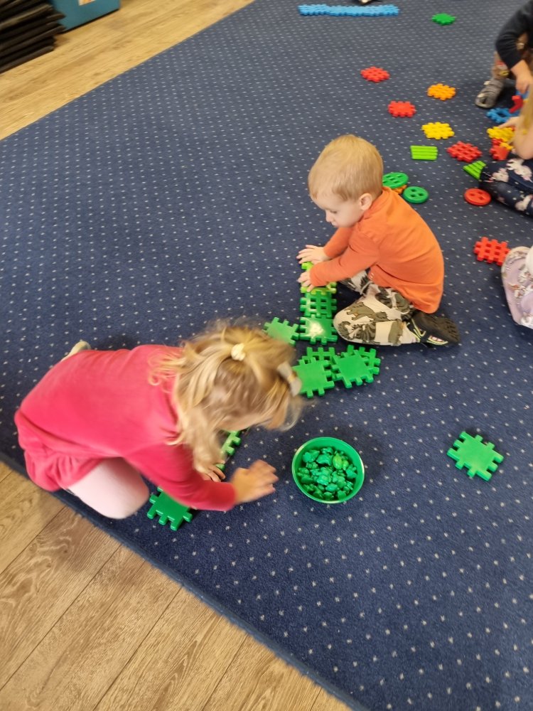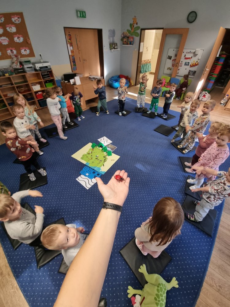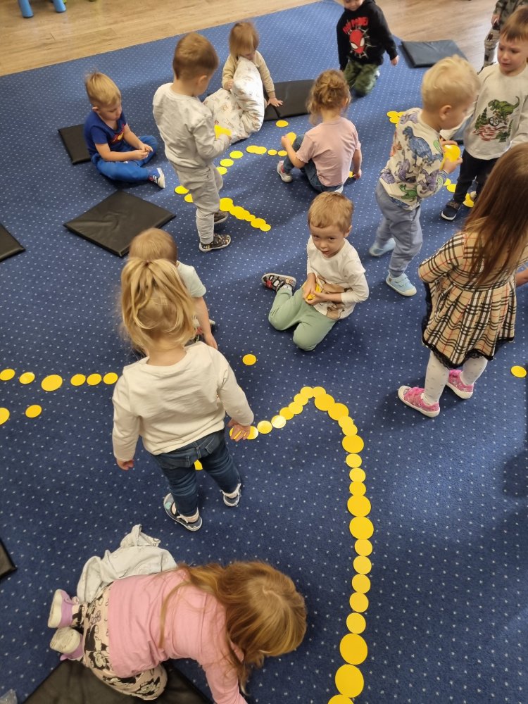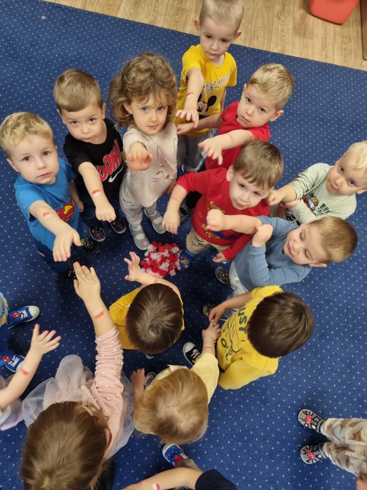 Październik w naszej grupie upłynął pod znakiem jesiennych zabaw i odkryć! Dzieci poznawały zmiany zachodzące w przyrodzie — obserwowaliśmy kolorowe liście, kasztany i żołędzie, a także rozmawialiśmy o tym, jak zwierzęta przygotowują się do zimy. Maluszki chętnie uczestniczyły w zabawach sensorycznych z wykorzystaniem darów jesieni, tworzyły piękne prace plastyczne i ćwiczyły sprawność małych rączek.