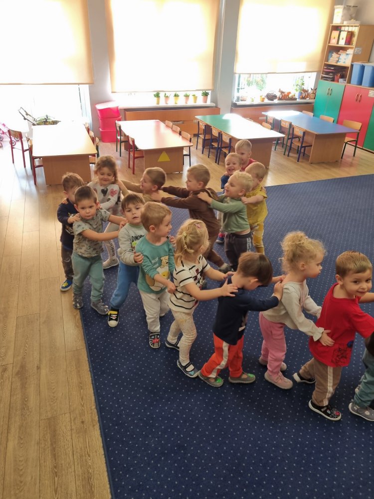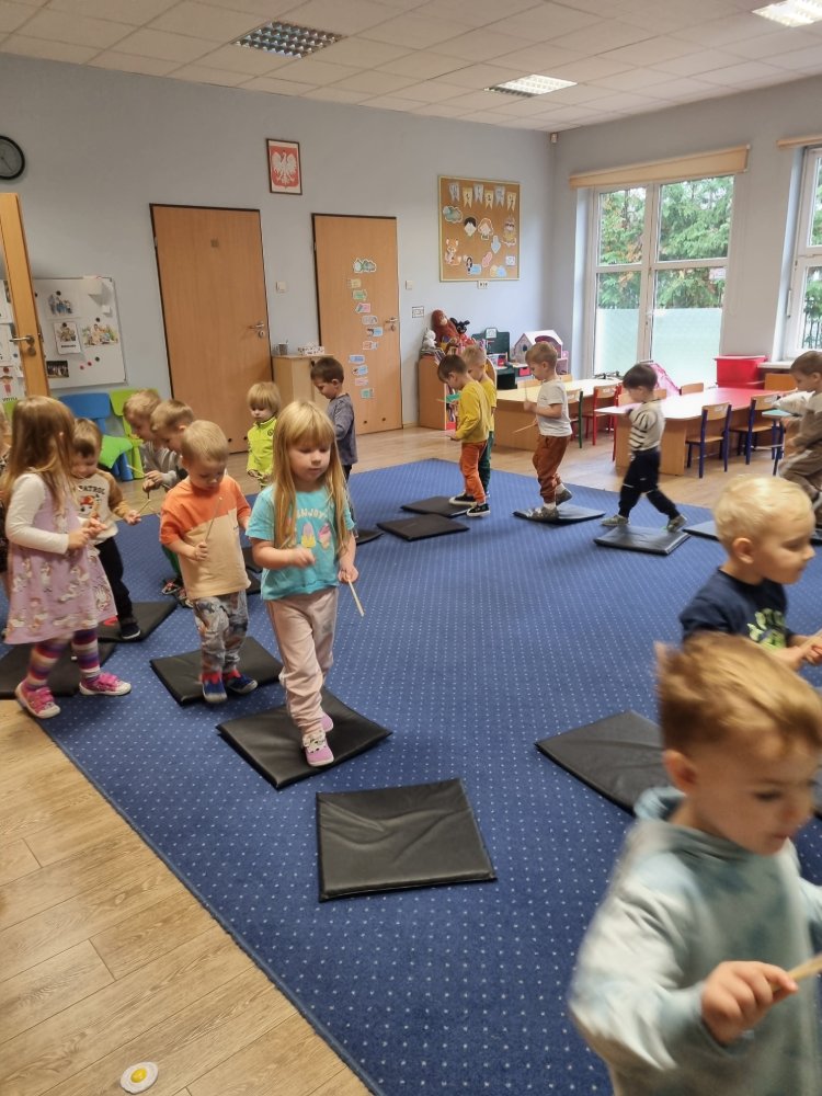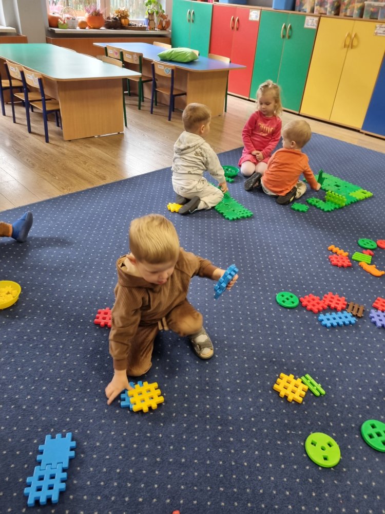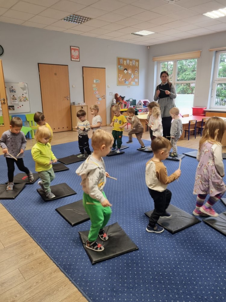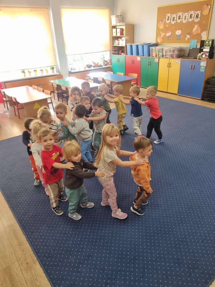 Nie zabrakło też muzyki i ruchu! Codzienne tańce i zabawy rytmiczne sprawiały wszystkim mnóstwo radości. Wspólnie uczyliśmy się piosenek o jesieni, a także pierwszych krótkich wierszyków. W październiku świętowaliśmy również Dzień Dyni — to był dzień pełen pomarańczowych strojów, wesołych zabaw i dyniowych niespodzianek. Maluszki coraz lepiej radzą sobie z codziennymi czynnościami, uczą się współpracy, dzielenia zabawkami i pomagania sobie nawzajem. Widać, jak z tygodnia na tydzień stają się coraz bardziej samodzielne i ciekawe świata! Z radością czekamy na kolejne jesienne przygody w listopadzie!
