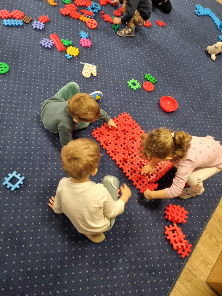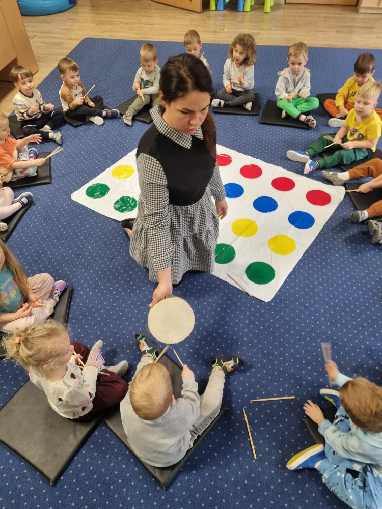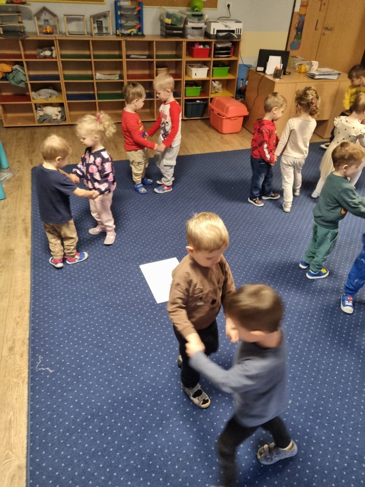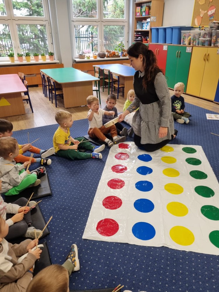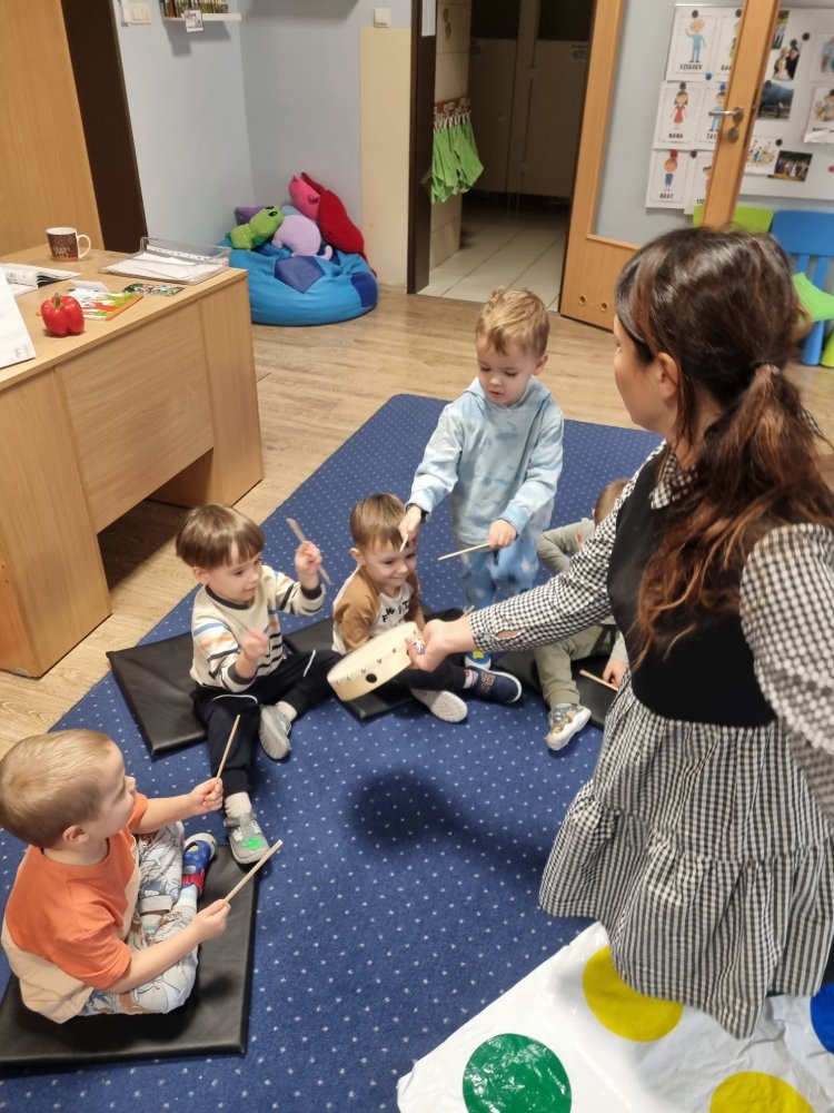 Nie zabrakło też muzyki i ruchu! Codzienne tańce i zabawy rytmiczne sprawiały wszystkim mnóstwo radości. Wspólnie uczyliśmy się piosenek o jesieni, a także pierwszych krótkich wierszyków. W październiku świętowaliśmy również Dzień Dyni — to był dzień pełen pomarańczowych strojów, wesołych zabaw i dyniowych niespodzianek. Maluszki coraz lepiej radzą sobie z codziennymi czynnościami, uczą się współpracy, dzielenia zabawkami i pomagania sobie nawzajem. Widać, jak z tygodnia na tydzień stają się coraz bardziej samodzielne i ciekawe świata! Z radością czekamy na kolejne jesienne przygody w listopadzie!