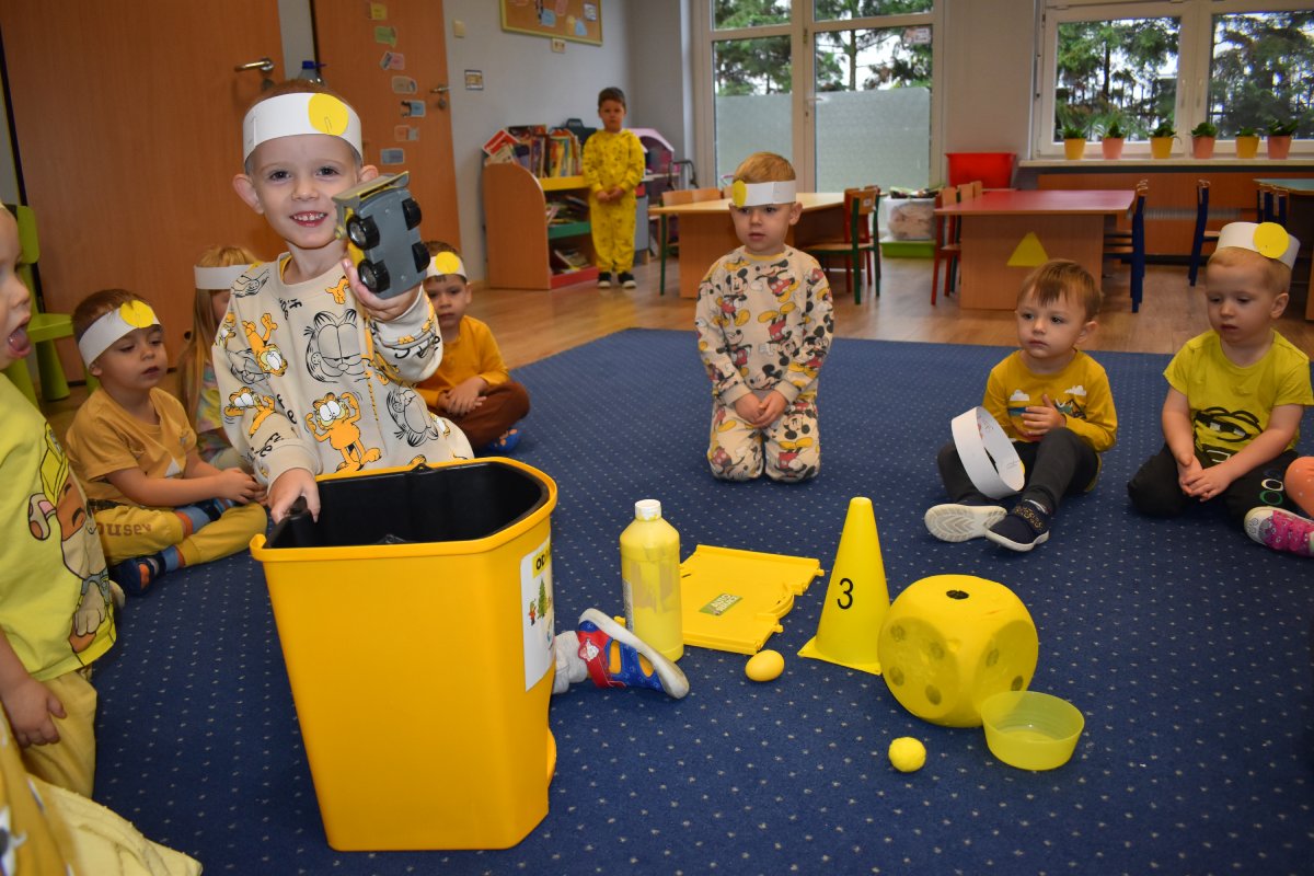 Październik należy do koloru żółtego. Tego dnia każdy z nas ubrał się w tym właśnie kolorze, były zabawy ruchowe, zagadki, dopasowanie cieni i wiele innych zadań, które były nie lada wyzwaniem.
