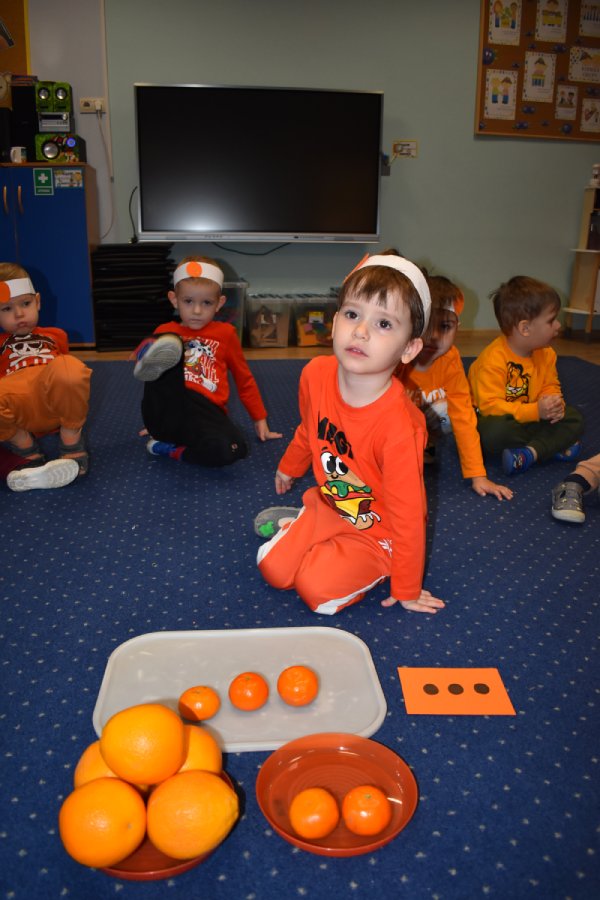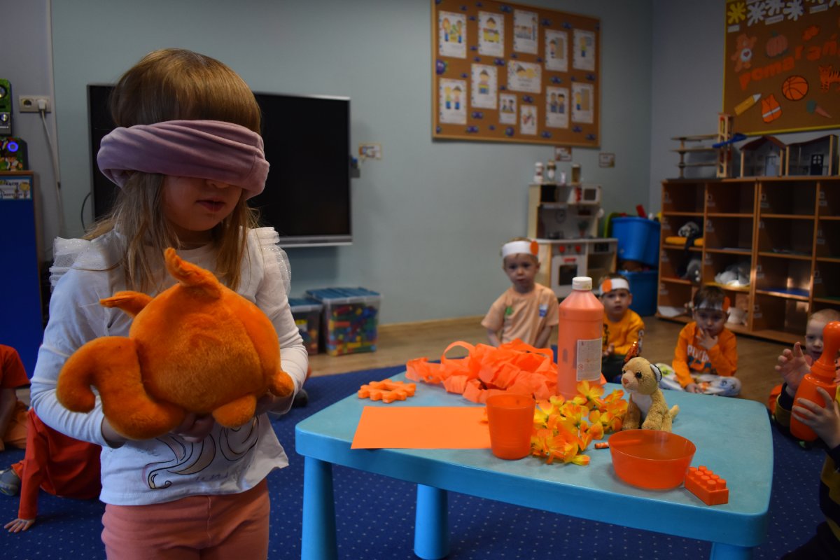W ramach naszego programu edukacyjnego, zamieniły się w małych odkrywców i artystów, zgłębiając tajemnice otaczającego nas świata kolorów. Celem zajęć było utrwalenie barwy pomarańczowej.
