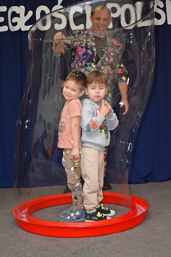 W listopadzie mięliśmy przyjemność gościć Pana Bańkę, który umilił nam czas wspaniałym pokazem z bańką mydlaną w roli głównej. Przedszkolaki nie tylko oglądały ciekawy występ, ale mogli w nim sami uczestniczyć. To było naprawdę niesamowite widowisko.