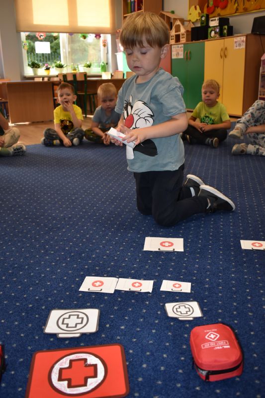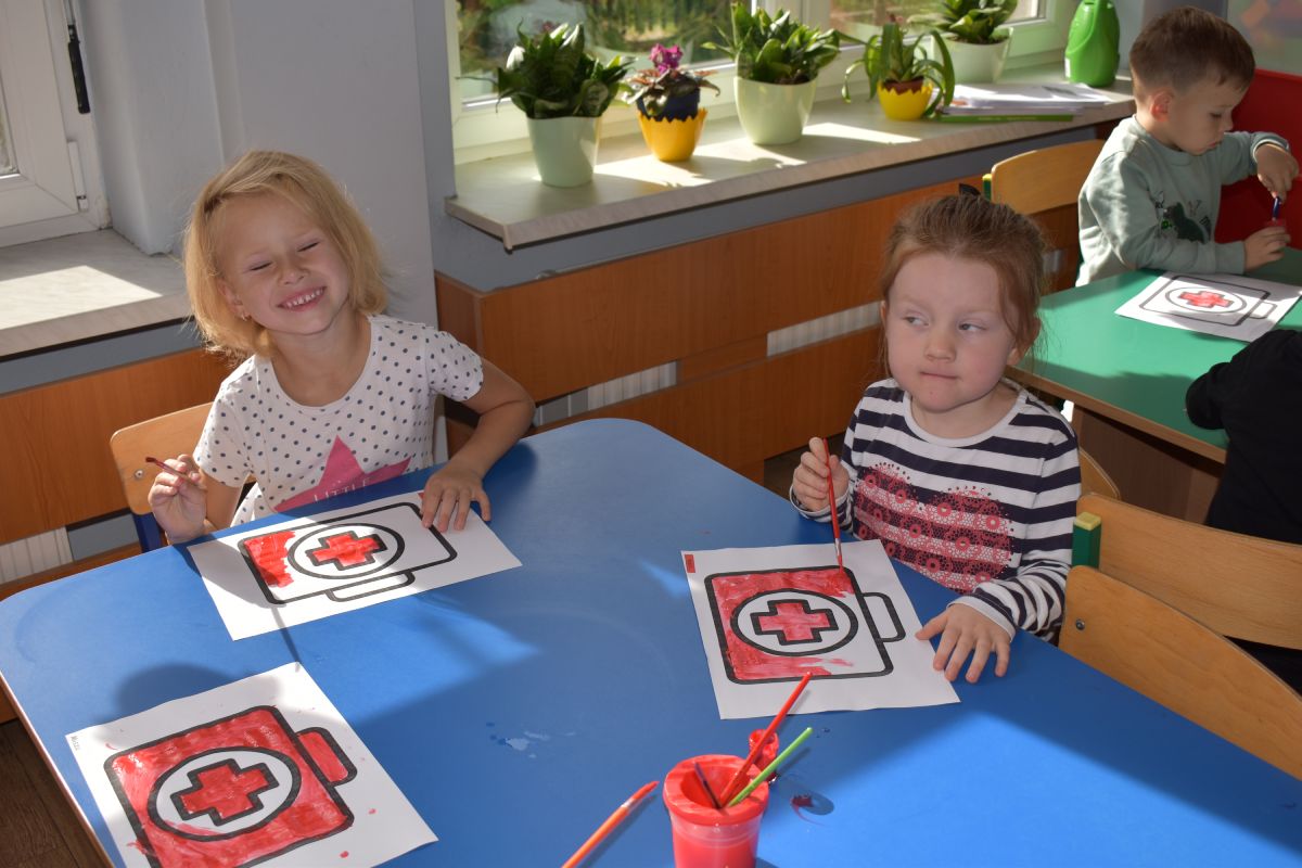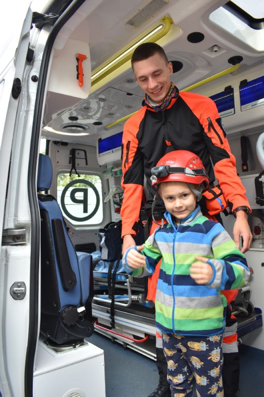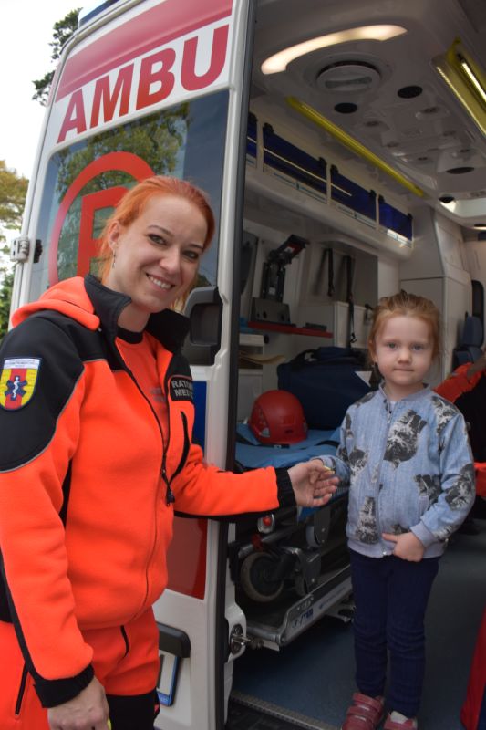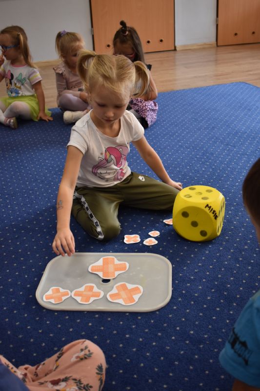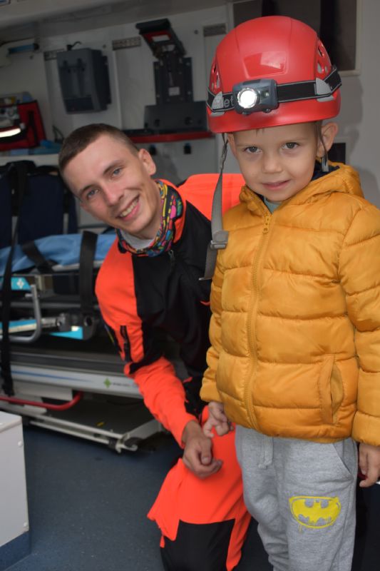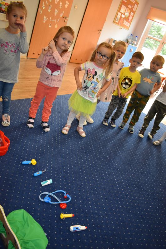Jako pierwsi odwiedzili nas ratownicy medyczni, którzy w ciekawy sposób opowiedzieli o swojej pracy. Następnie pokazali sprzęt medyczny, co odważni mogli sami stać się małymi „doktorami”, usłyszeć bicie serca swojego kolegi czy zajrzeć do karetki. Takie spotkanie na długo pozostanie w pamięci małych przedszkolaków.
