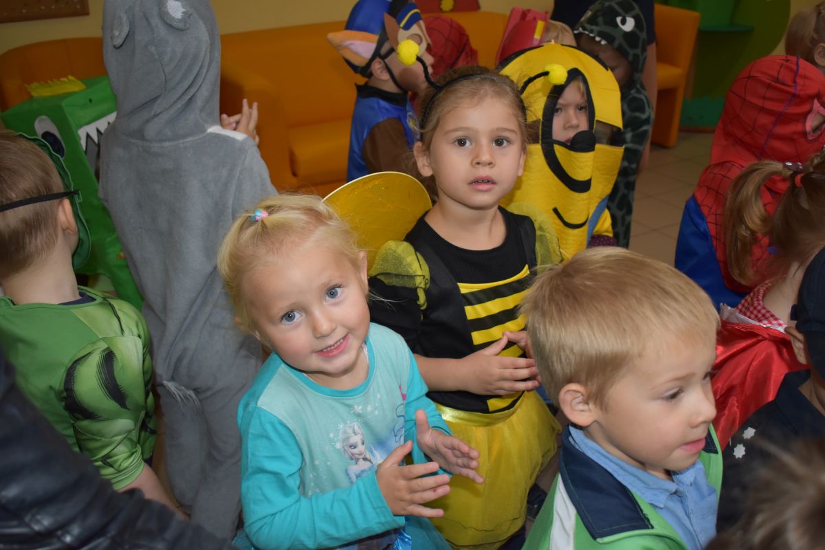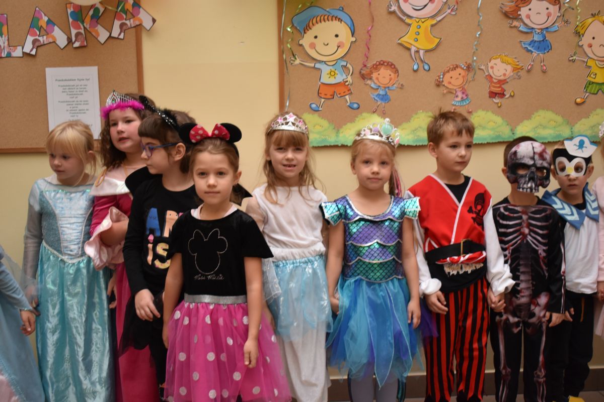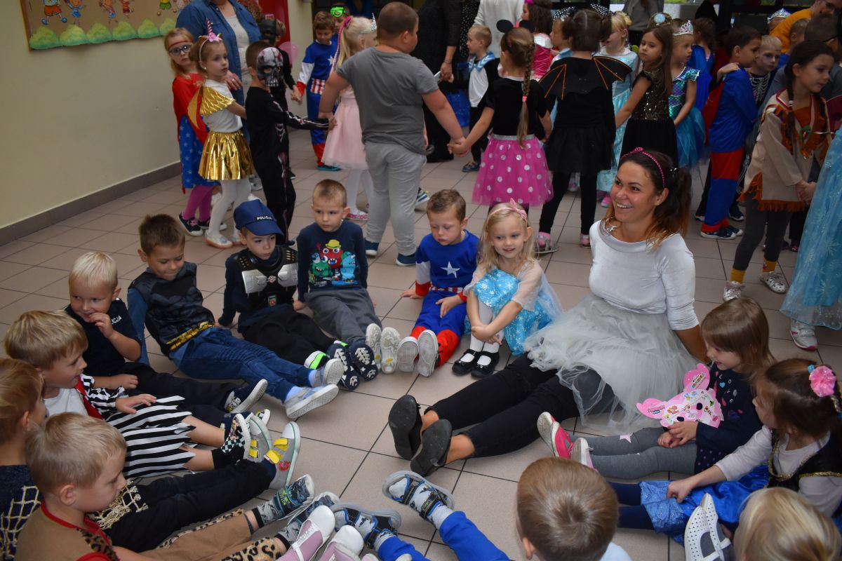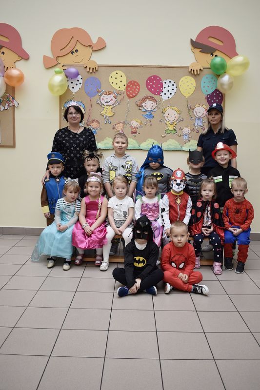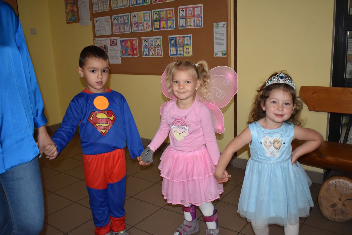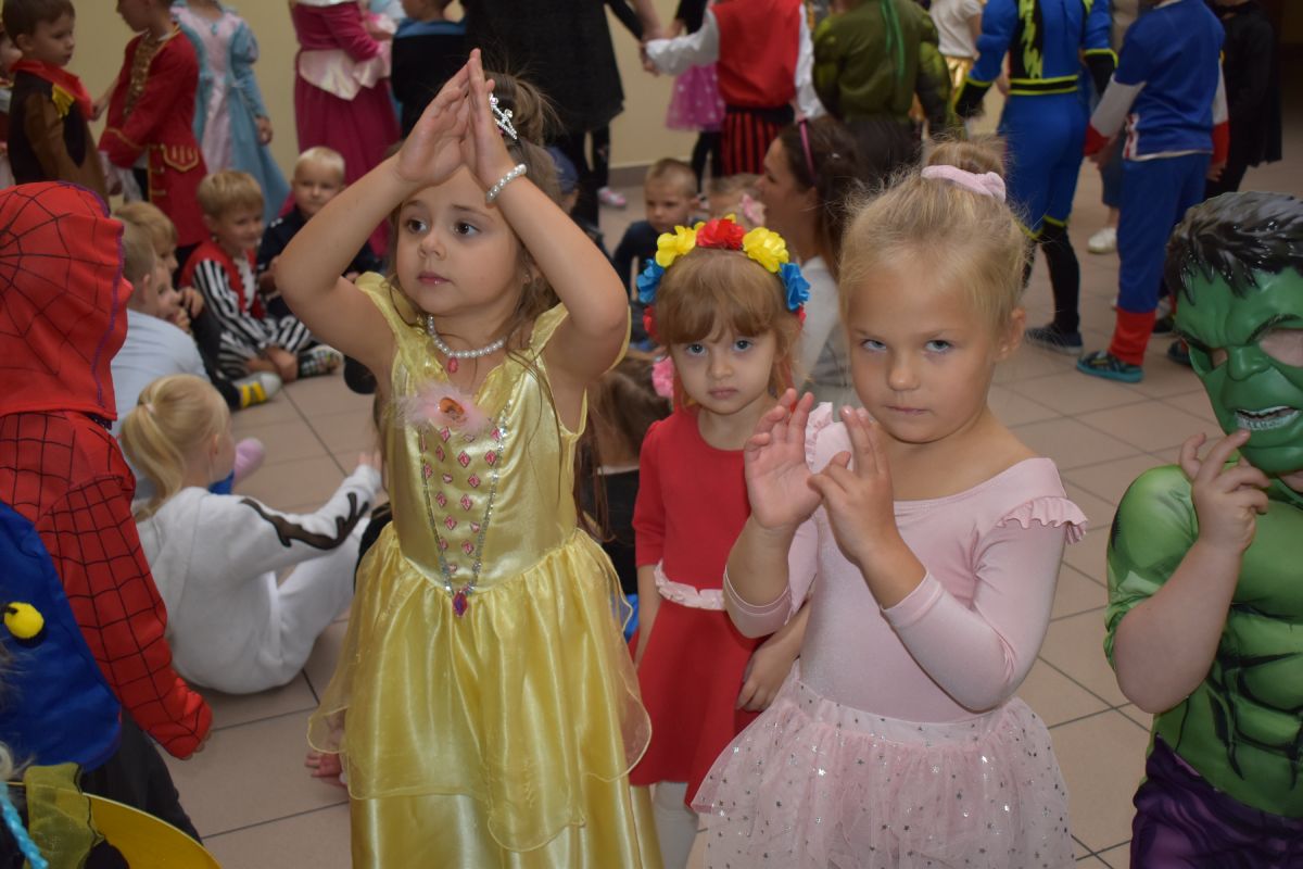 Każde dziecko w ten dzień mogło się wcielić w wybraną przez siebie postać. Wśród dziewczynek królowały księżniczki choć nie zabrakło również baletnic, biedronek, wróżek czy też eleganckich dam. U płci przeciwnej dominowali prawdziwi bohaterowie - Superman, Batman czy cała ekipa Psiego Patrolu. Zabawę prowadziły pani Gosi i Paulina, które nie pozwoliły, aby jakieś dziecko smutne stało pod ścianą. Świetnie dobrana muzyka i zabawy wprawiły wszystkich uczestników w dobry nastrój, a słodki poczęstunek dostarczył energii do zabawy. Bal na długo pozostanie miłym wspomnieniem.