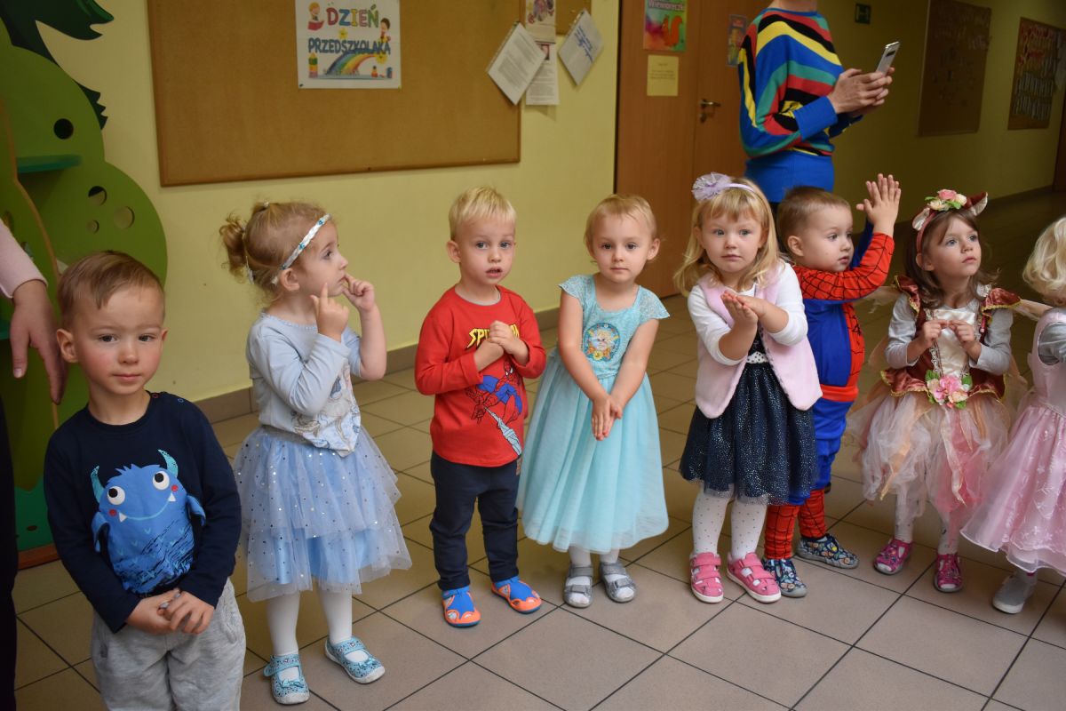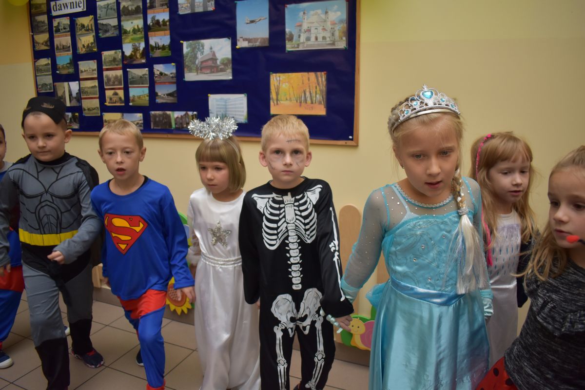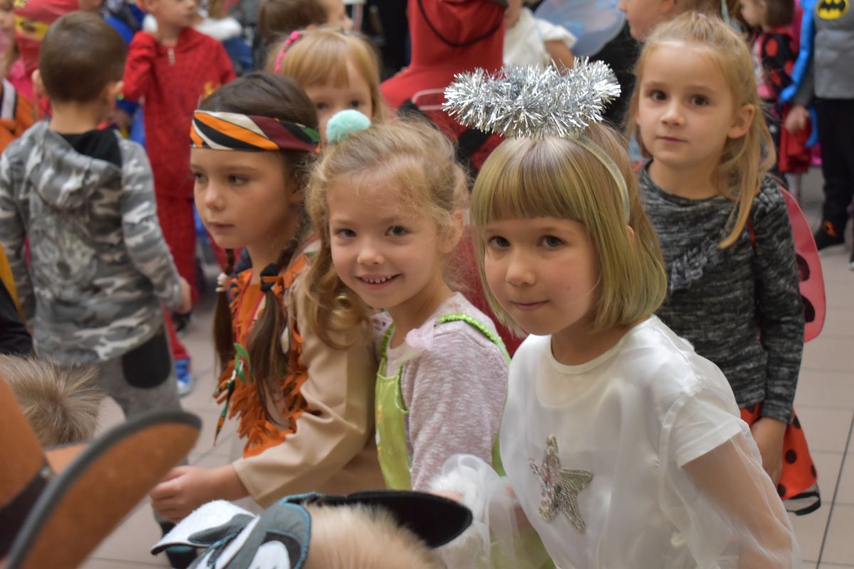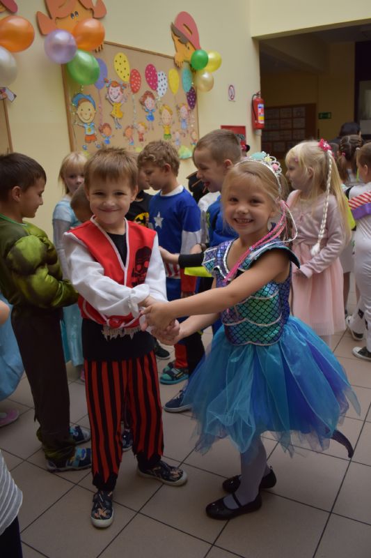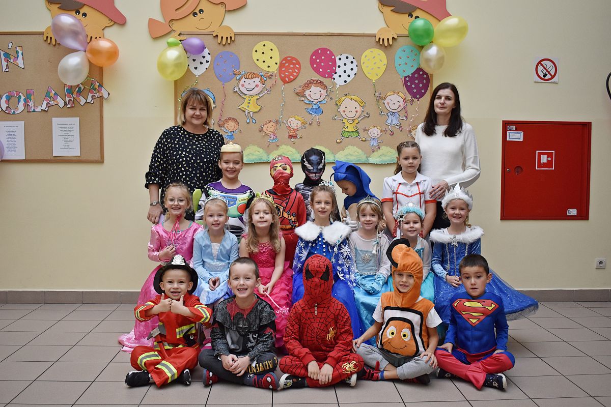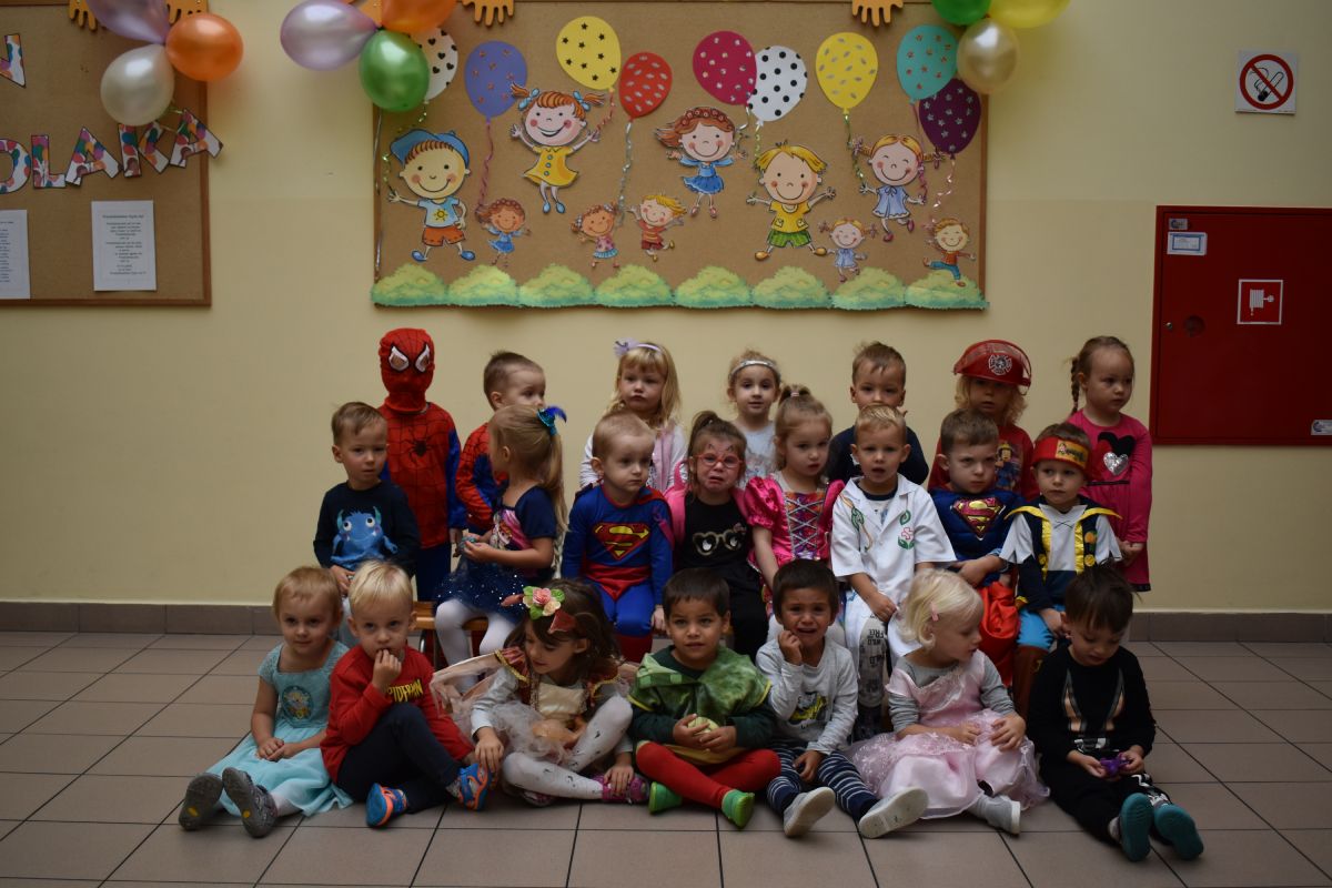 Każde dziecko w ten dzień mogło się wcielić w wybraną przez siebie postać. Wśród dziewczynek królowały księżniczki choć nie zabrakło również baletnic, biedronek, wróżek czy też eleganckich dam. U płci przeciwnej dominowali prawdziwi bohaterowie - Superman, Batman czy cała ekipa Psiego Patrolu. Zabawę prowadziły pani Gosi i Paulina, które nie pozwoliły, aby jakieś dziecko smutne stało pod ścianą. Świetnie dobrana muzyka i zabawy wprawiły wszystkich uczestników w dobry nastrój, a słodki poczęstunek dostarczył energii do zabawy. Bal na długo pozostanie miłym wspomnieniem.