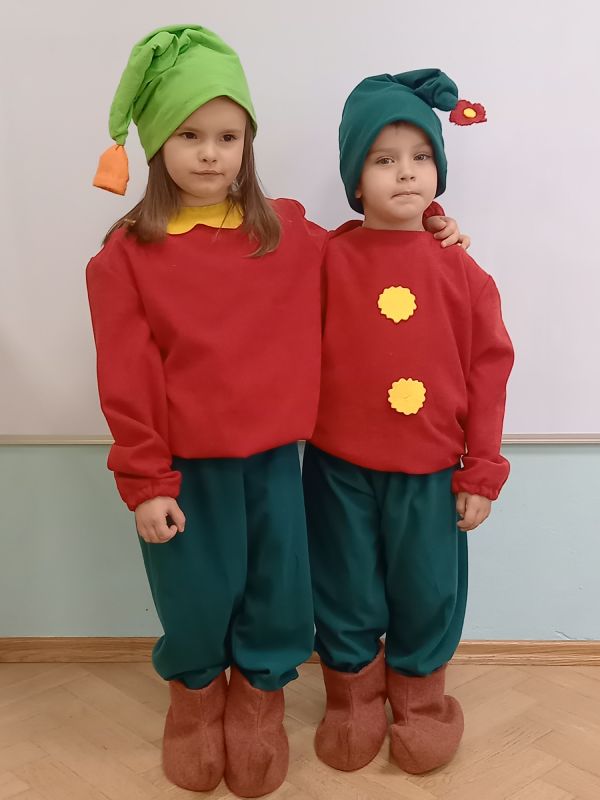 Jak przystało na prawdziwych przedszkolaków dzieci z grupy „Jeżyki” potrafią już pięknie zaśpiewać Hymn naszego przedszkola. Z wielka radością mogły założyć stroje Leśnych Skrzatów.