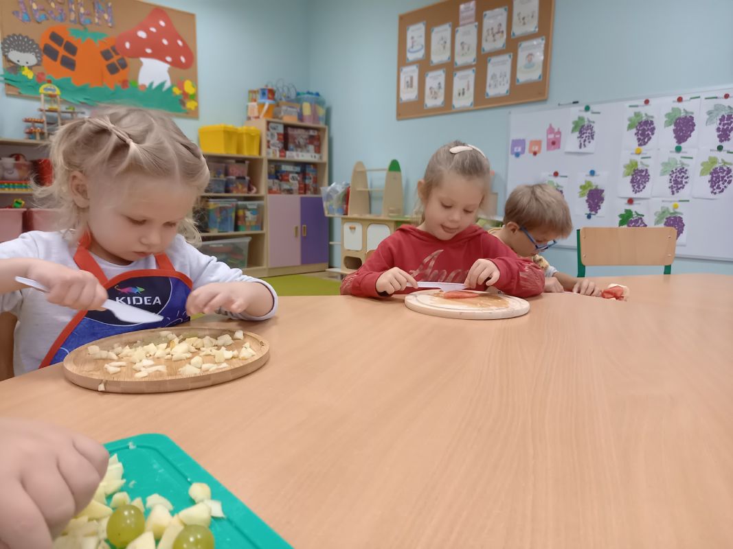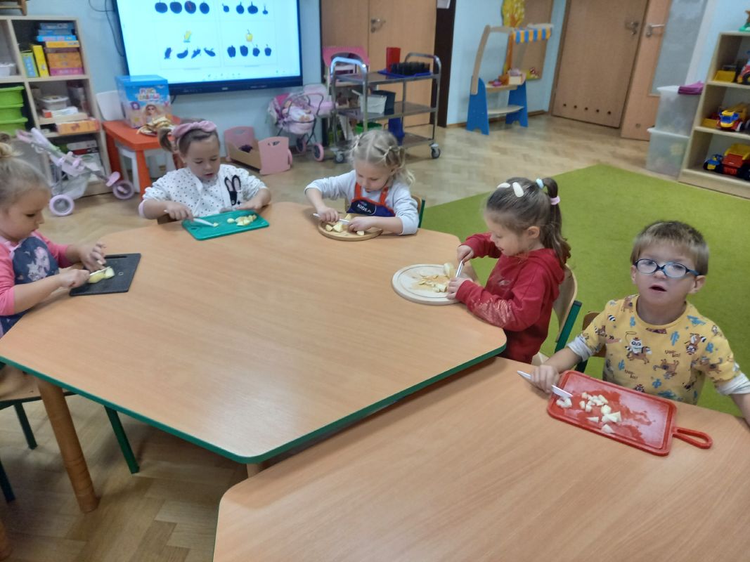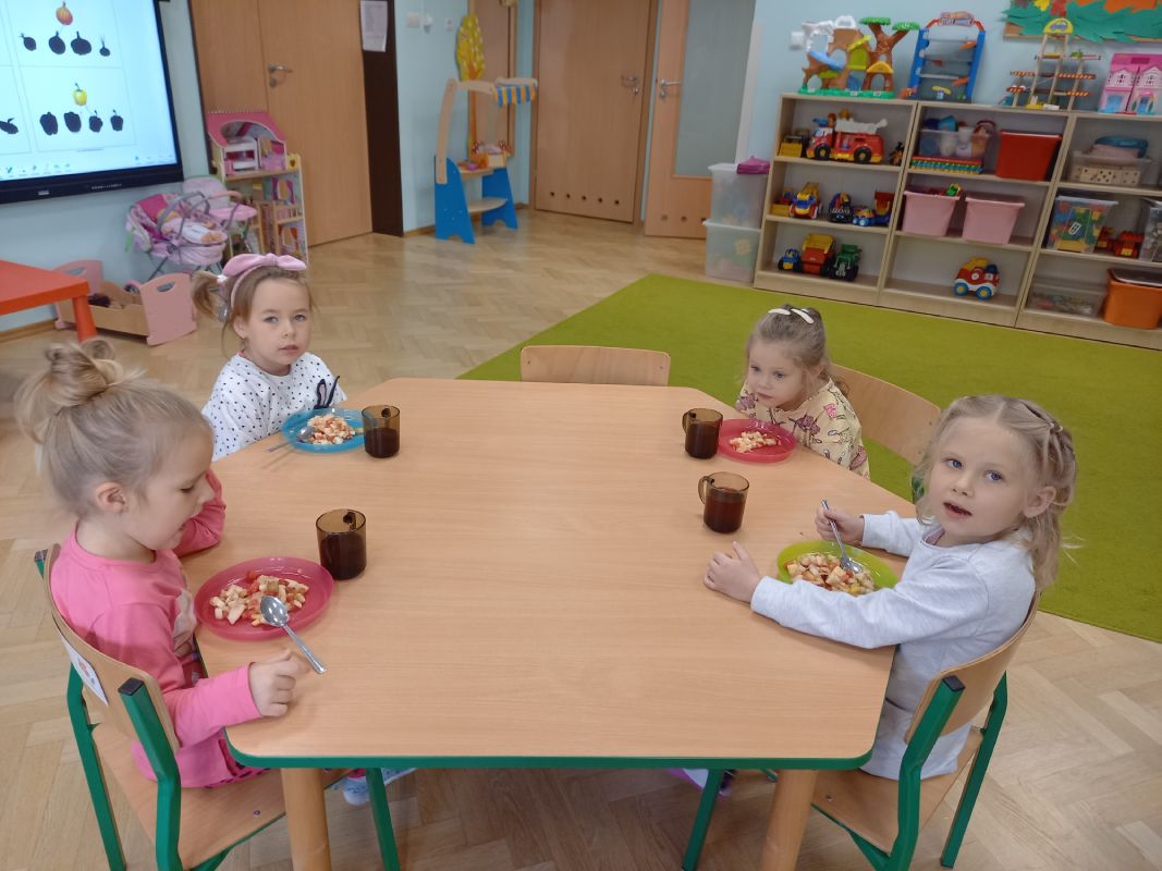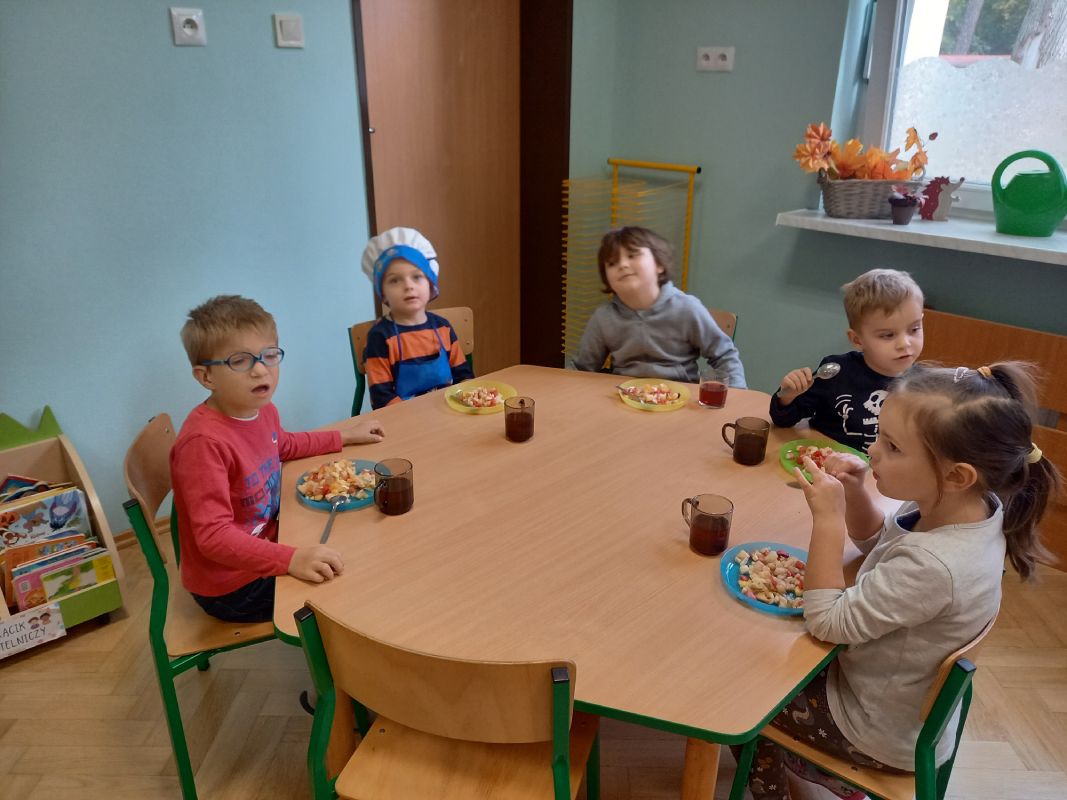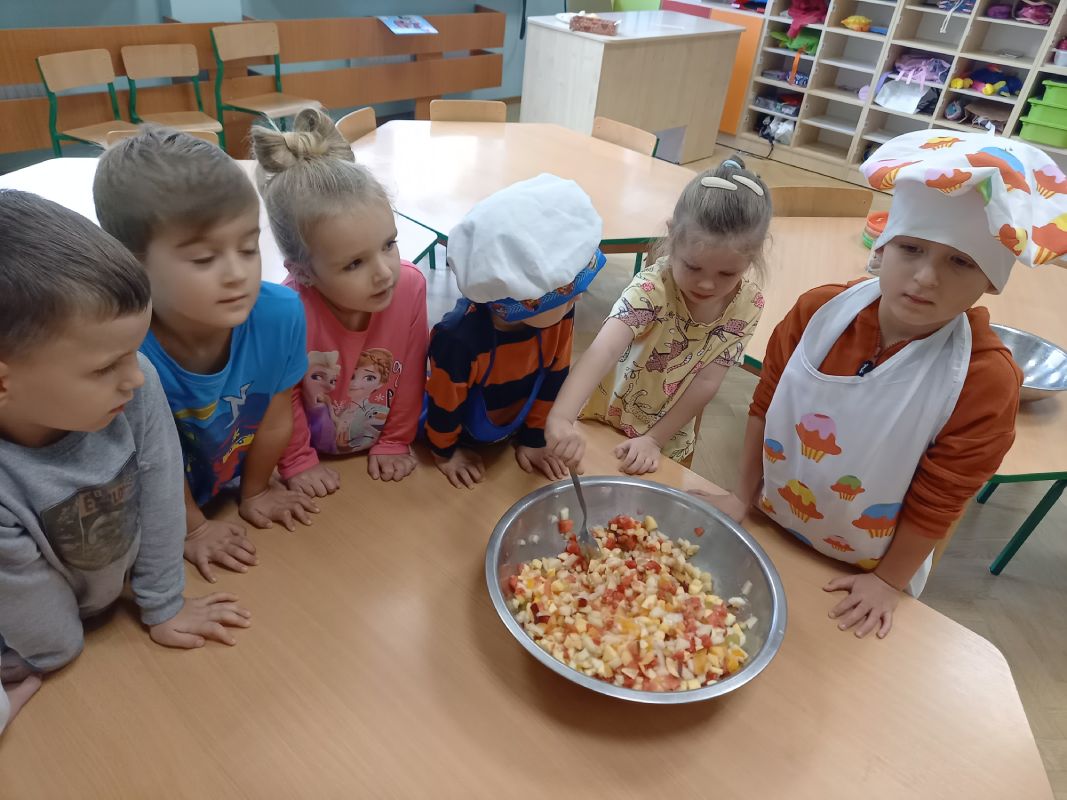 Edukacja prozdrowotna to ważny element pracy z dziećmi w przedszkolu. Wszyscy dobrze wiemy, ile pozytywów dla właściwego rozwoju dzieci niesie zdrowe odżywianie. Przedszkolaki z grupy „Jeżyki” przeobraziły się w wytrawnych kucharzy i miały okazję samodzielnie przygotować sałatkę owocową.