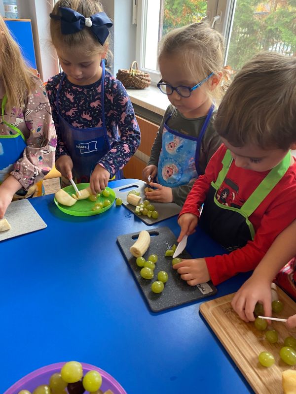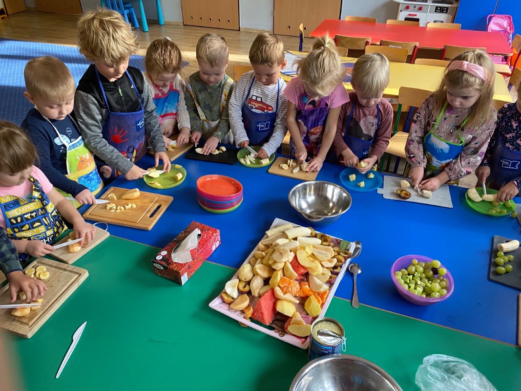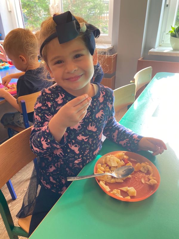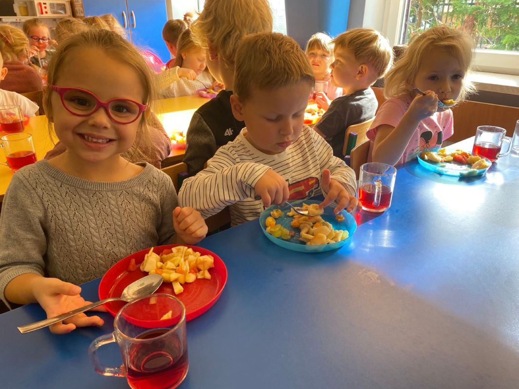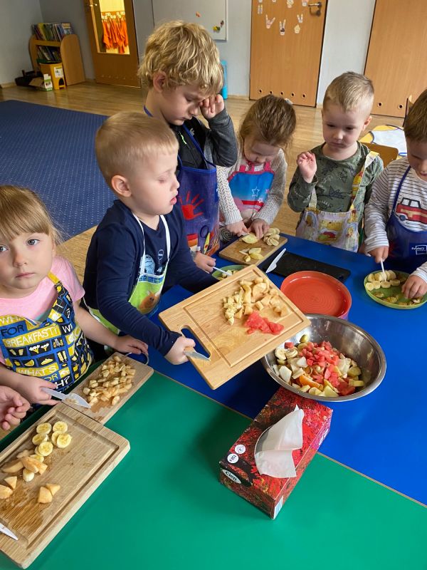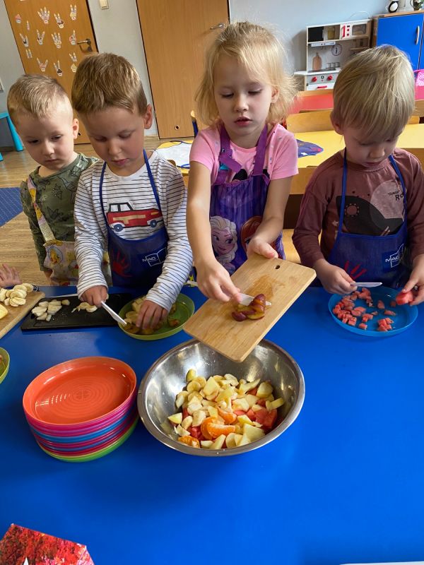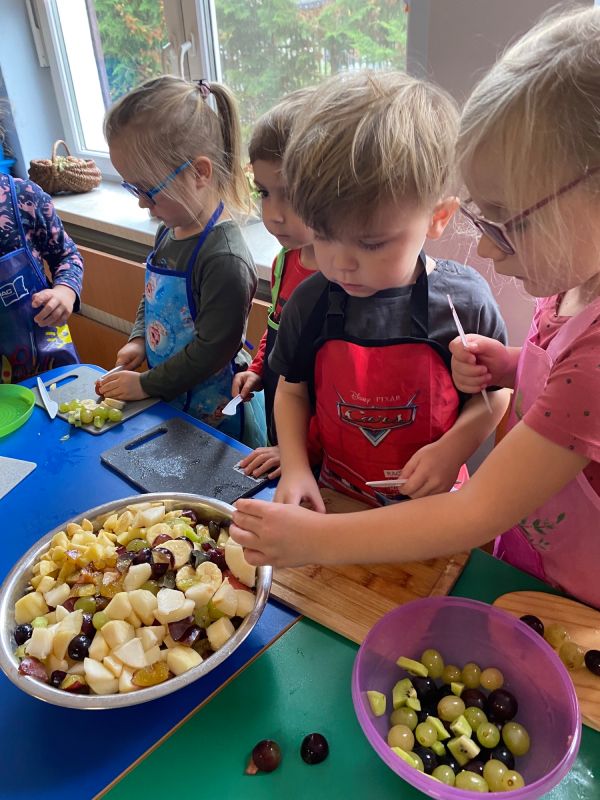 W ramach Światowego Dnia Owoców i Warzyw, przedszkolaki z grupy "Jagódki" miały okazję wspólnie przygotować sałatkę owocową, którą zjadły ze smakiem. Sałatka była nie tylko smaczna i zdrowa, ale dała też dzieciom wiele radości.