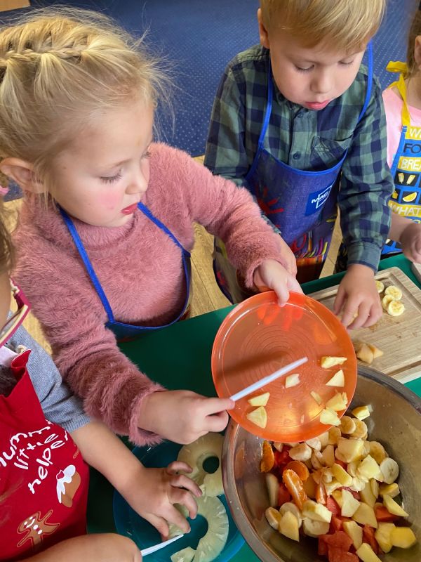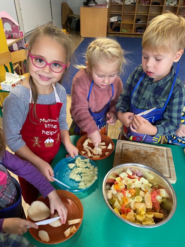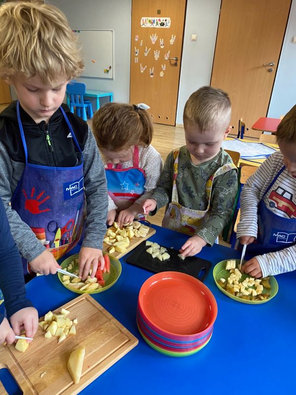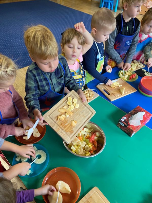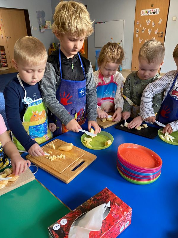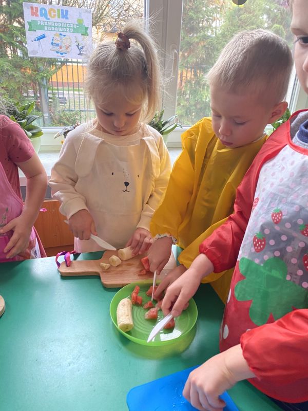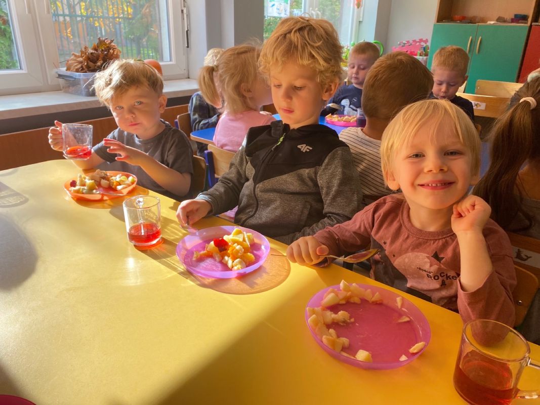 W ramach Światowego Dnia Owoców i Warzyw, przedszkolaki z grupy "Jagódki" miały okazję wspólnie przygotować sałatkę owocową, którą zjadły ze smakiem. Sałatka była nie tylko smaczna i zdrowa, ale dała też dzieciom wiele radości.