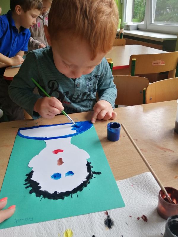Co się z farbami stanie, gdy dzieci niczym wiatr dmuchną na nie?! – eksperyment plastyczny w grupie „Wiewióreczki”