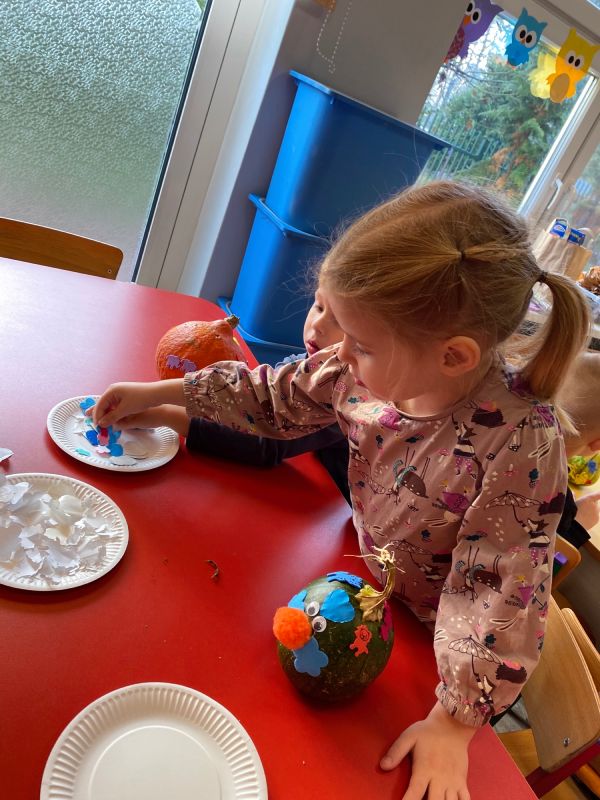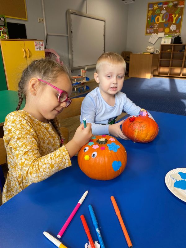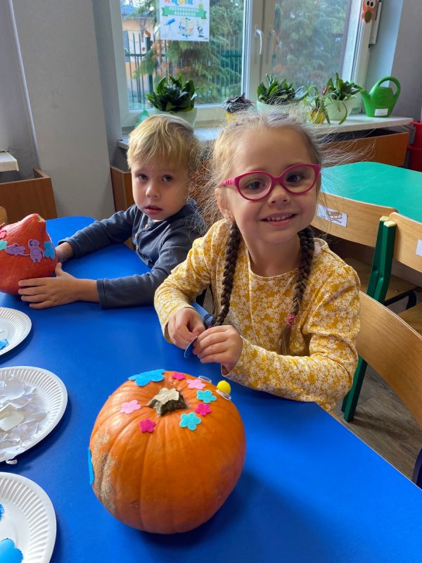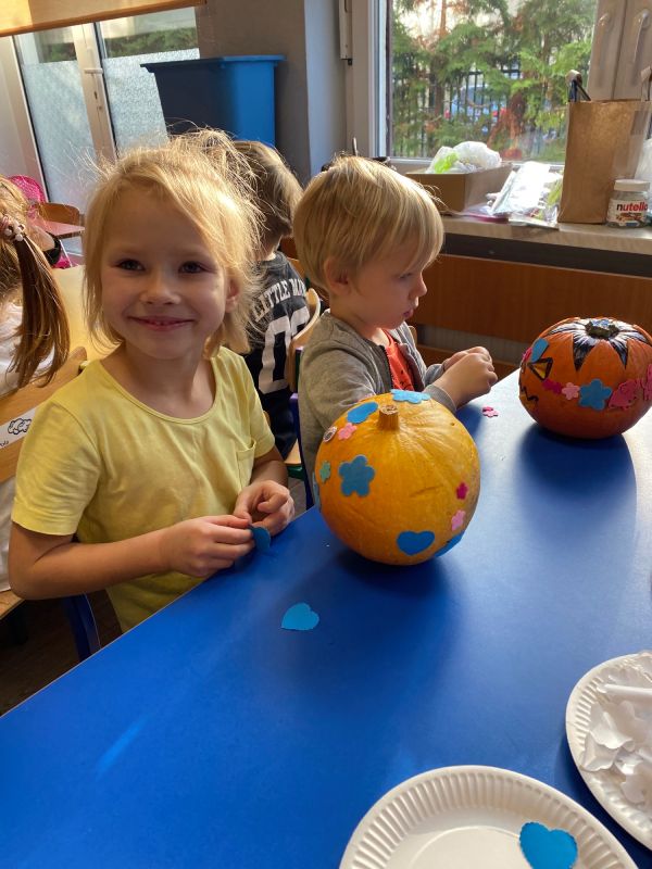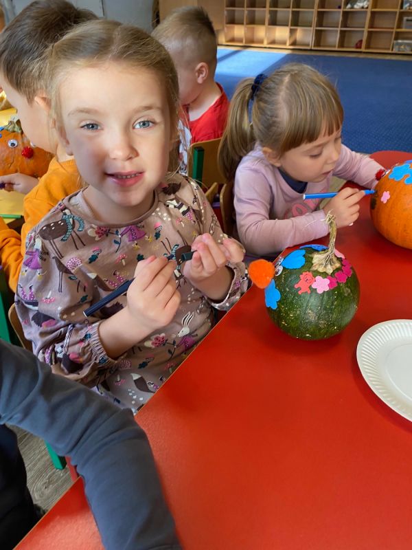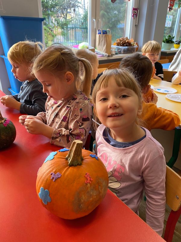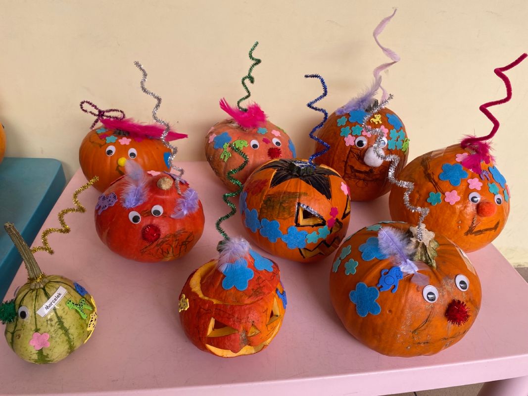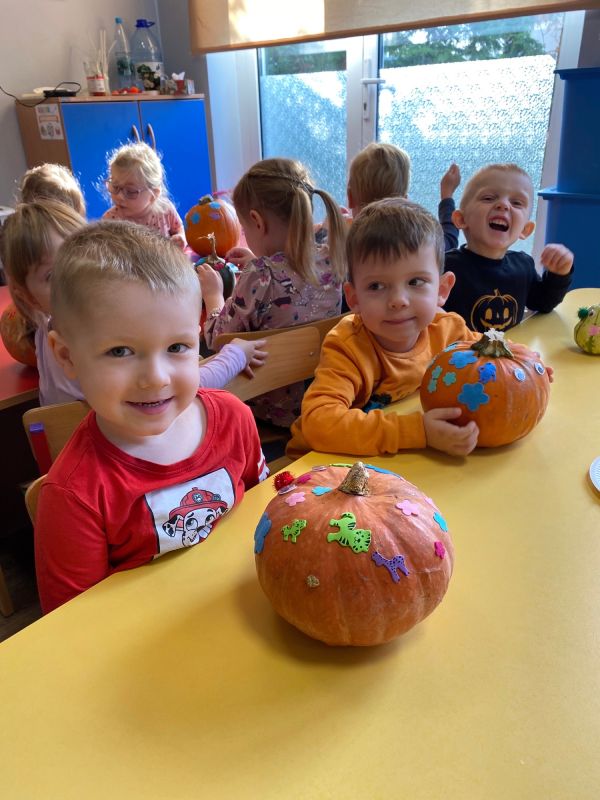 28 października dzieci z grupy II "Jagódki obchodziły Dzień Dyni. Przedszkolaki mogły oglądać, dotykać rożnej wielkości rożnego ubarwienia dynie. Poznały także warunki, w których wyrasta to warzywo. Nie zabrakło też zajęć plastycznych - każde dziecko ozdobiło swoją dynie wybranymi materiałami plastycznymi. Na koniec zrobiliśmy wystawę wszytskich pięknych prac.