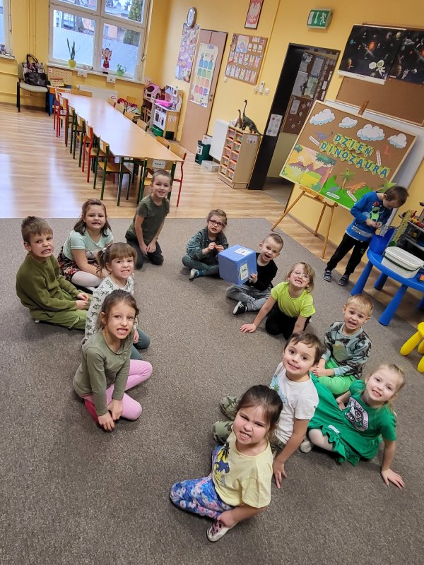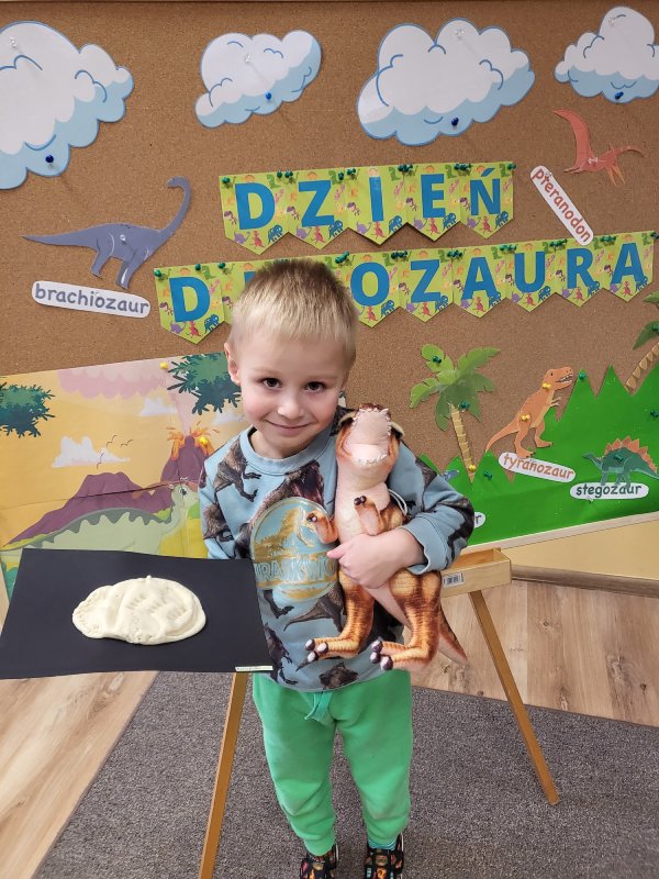 Dzień Dinozaura w tym roku wypada w niedzielę 26 lutego, dlatego świętowaliśmy ten ważny dzień dla wielbicieli tych zwierząt w piątek 24 lutego. Tego dnia każdy przyszedł w zielonym stroju z dinozaurem „pod pachą”. To był wesoły, ale jakże pracowity dzień.