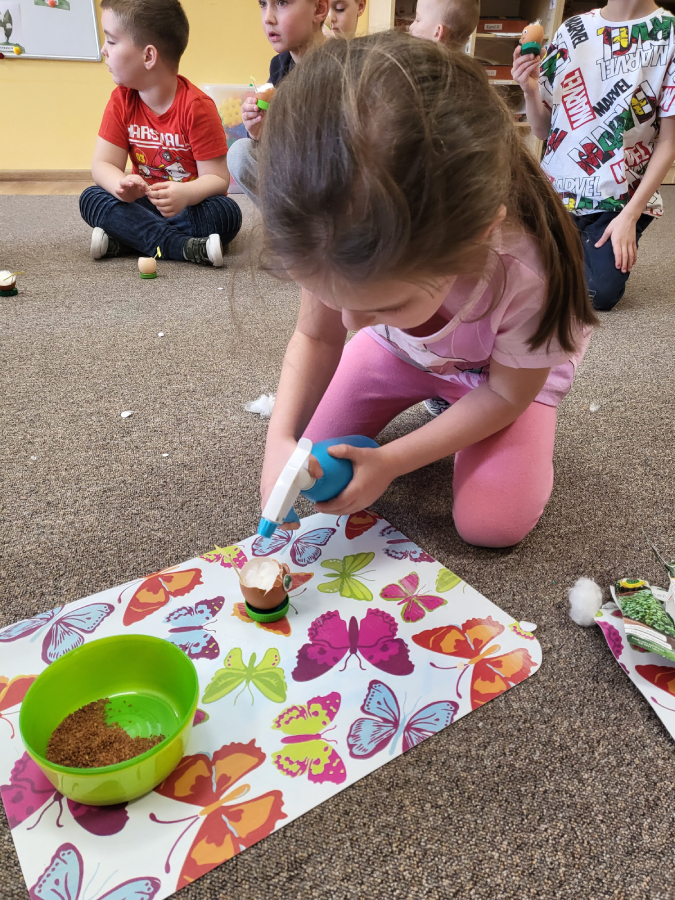 Święta Wielkanocne już za tydzień.. dlatego również w tym roku nasza grupa postanowiła zasiać rzeżuchę, jednak w nieco odmienny sposób.