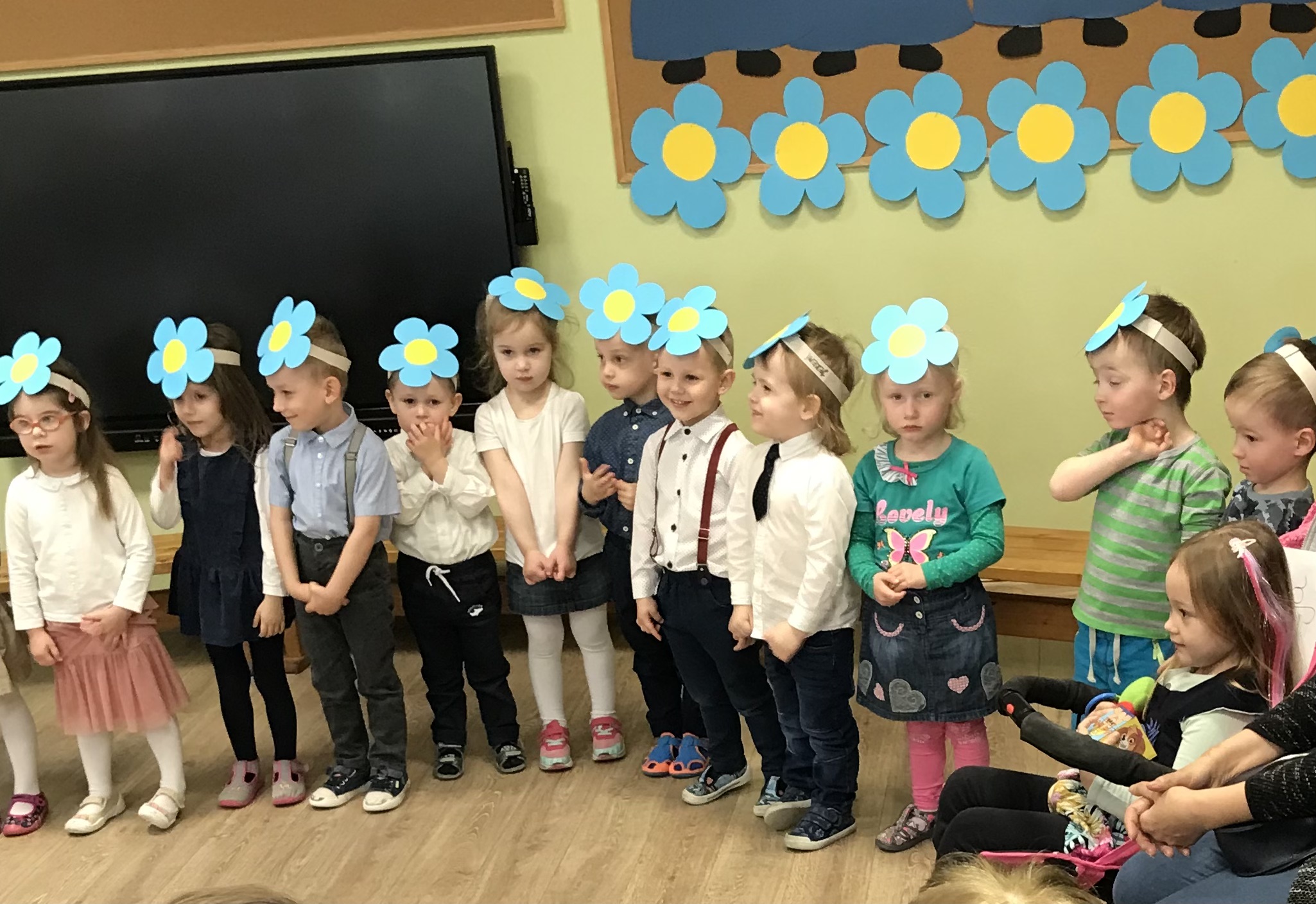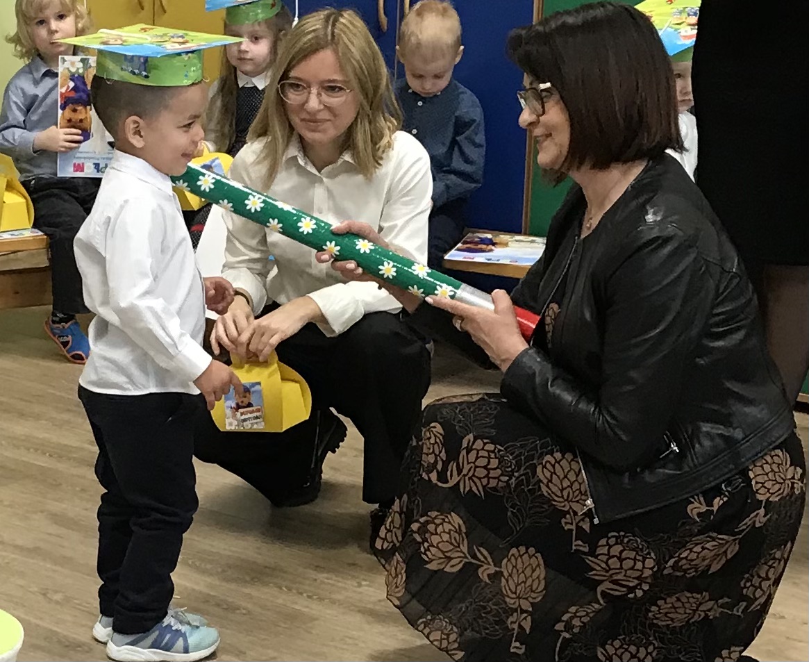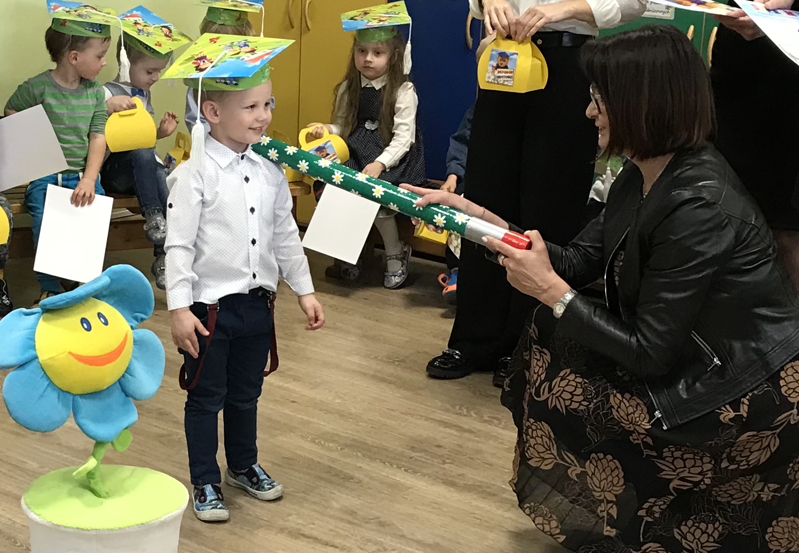Maluszki – Kwiatuszki uczestniczyły w uroczystym Pasowaniu na przedszkolaka. Gościom maluszki zaprezentowały piosenki i Taniec Kwiatów. Po części artystycznej nastąpiło Pasowanie przez panią dyrektor przedszkola Panią Hannę Waśniewską i przewodniczącą Rady Rodziców Panią Agnieszkę Duszyńską.