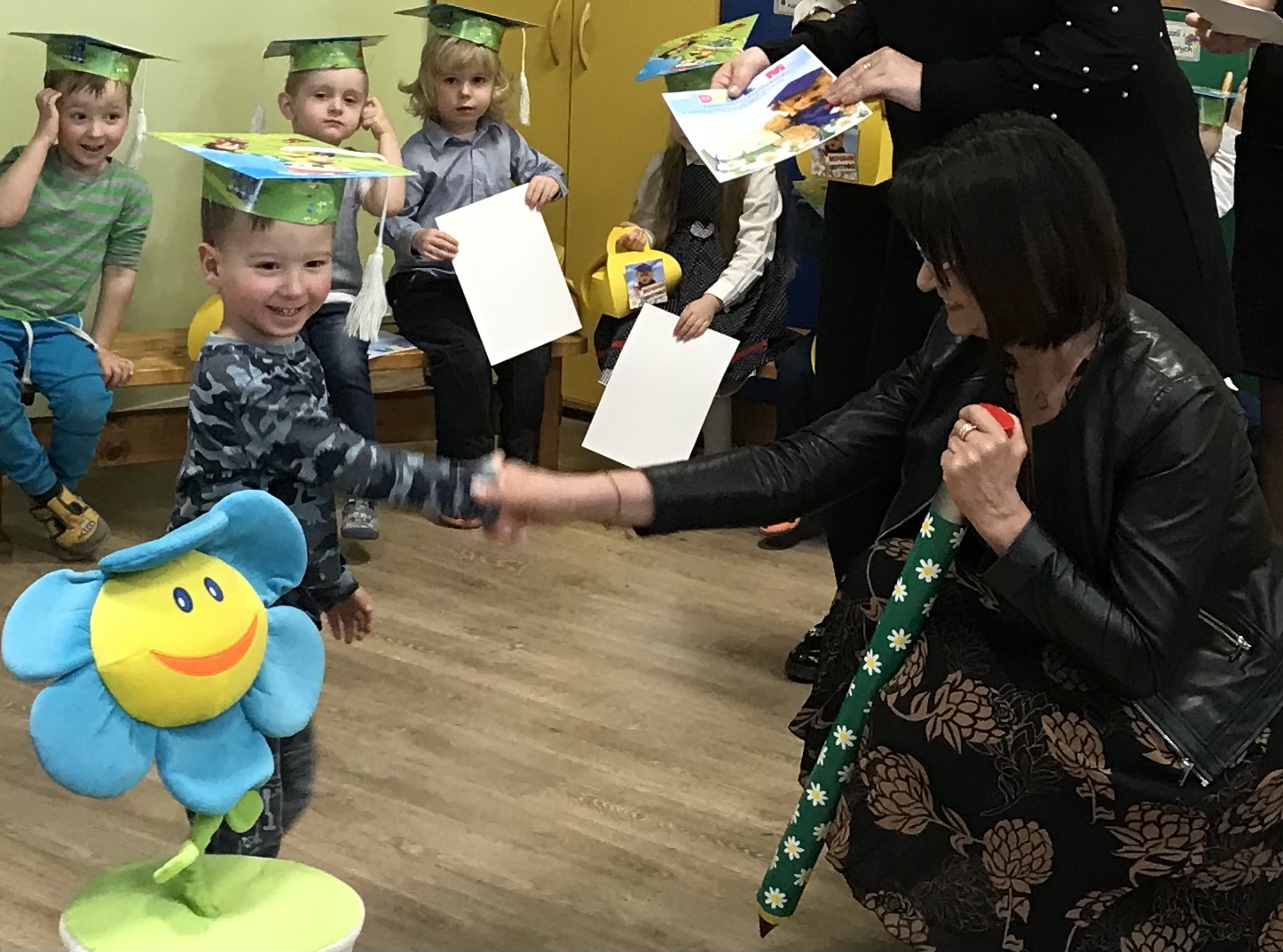 Wszystkie przedszkolaki odebrały dyplomy i upominki. Po części artystycznej na maluchy czekał poczęstunek oraz pyszny tort upieczony przez mamę Majeczki. Maluszki dołączyły tym samym do grona wszystkich innych „Leśnych Skrzatów”.