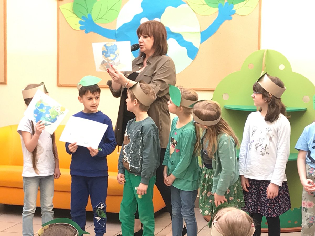 21 kwietnia wszystkie Leśne Skrzaty uczestniczyły w Uroczystym Dniu Ziemi. W tym dniu pięknie wystąpiła grupa Muchomorki prezentując piosenki o planecie Ziemi oraz ilustrowaną bajkę o Ziemi. Po występie odbyło się spotkanie z leśnikiem na temat dbałości o Ziemię, przyrodę i okoliczne lasy.