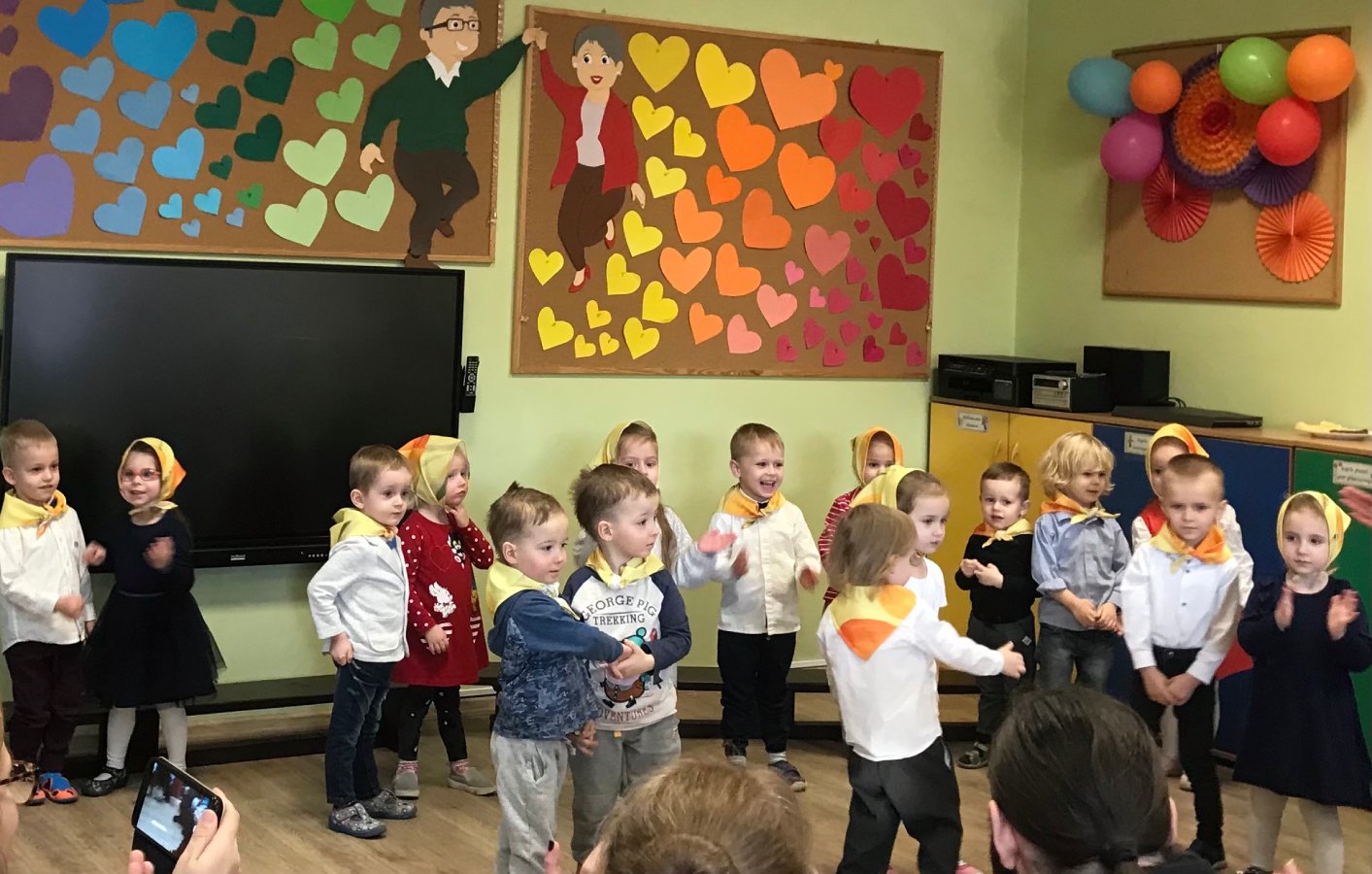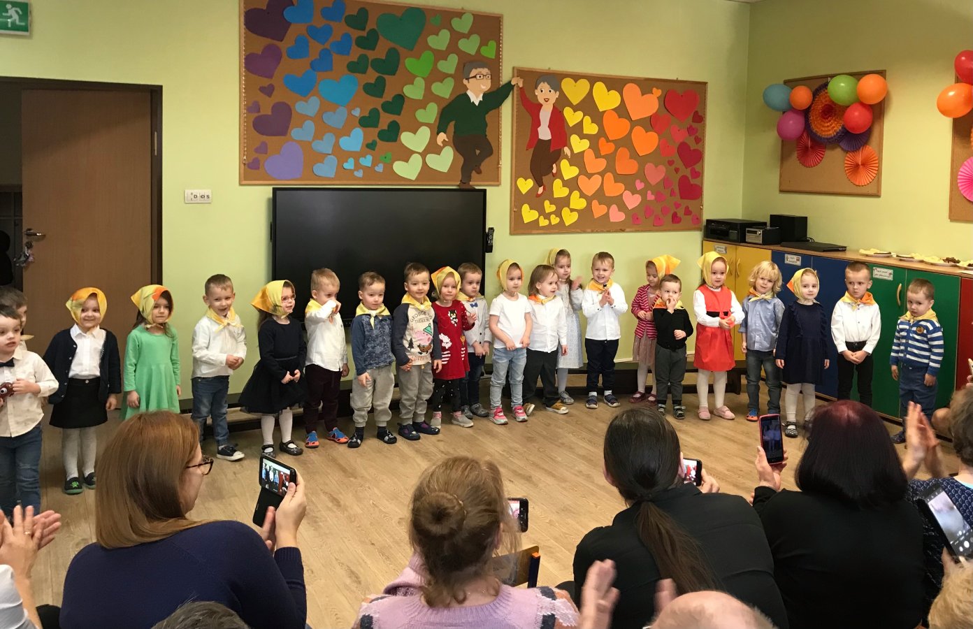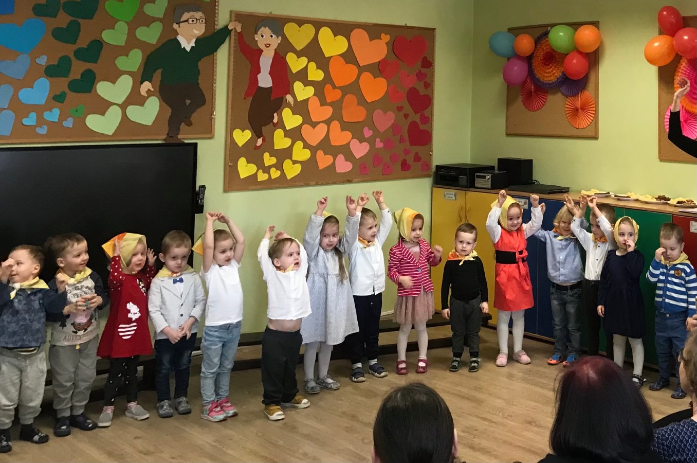 Maluszki dla kochanych babć i dziadziusiów przygotowały krótki występ oraz upominki z okazji ich święta. Były piosenki i tańce. Dziękujemy gościom za przybycie. Maluszkom wiele radości sprawiła wizyta najmilszych gości.
