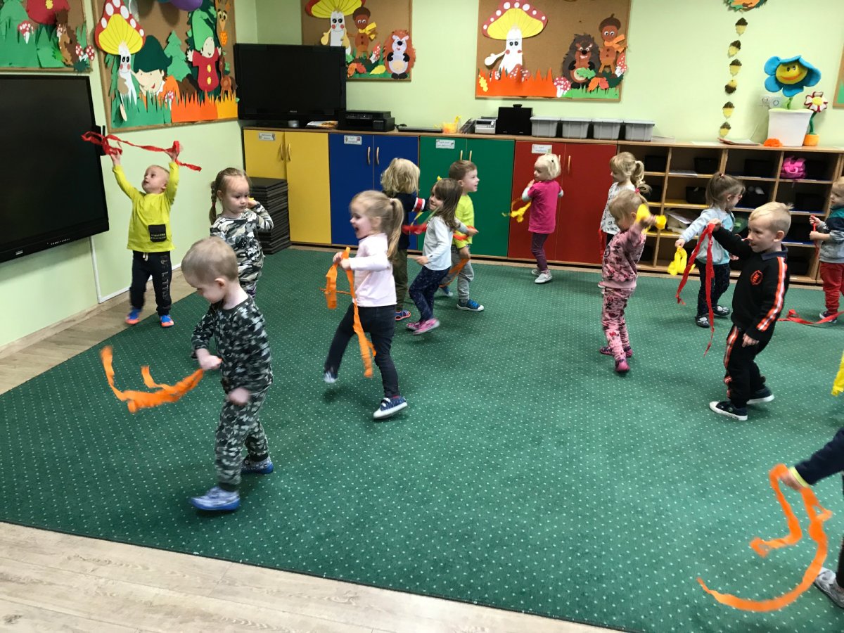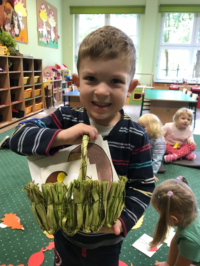Z koszykiem zbieraliśmy jesienne grzyby i liście, malowaliśmy farbami jesienne kolorowanki, liczyliśmy jesienne liście na drzewie. Tańczyliśmy również z bibułkami do muzyki poważnej „Jesień” Vivaldiego. Jesień już znamy i chętnie ją przywitamy.
