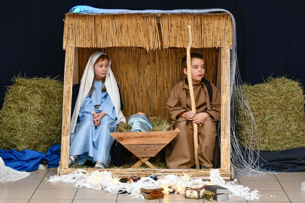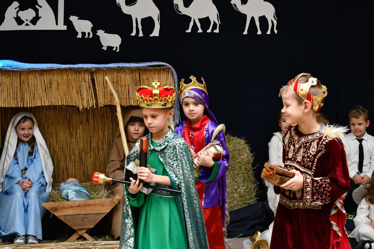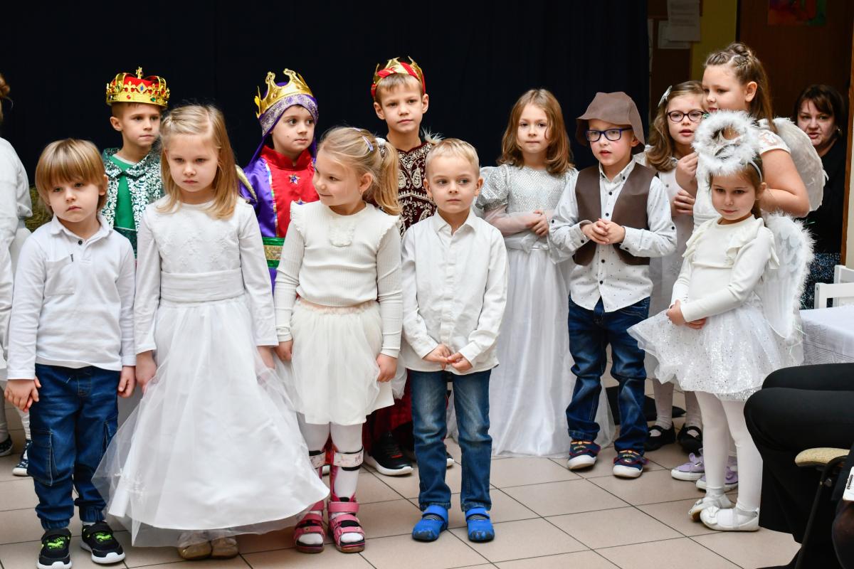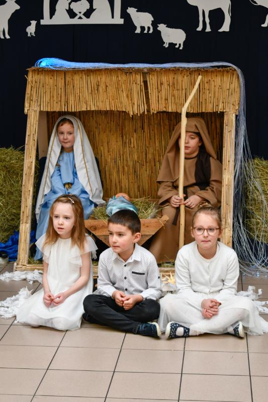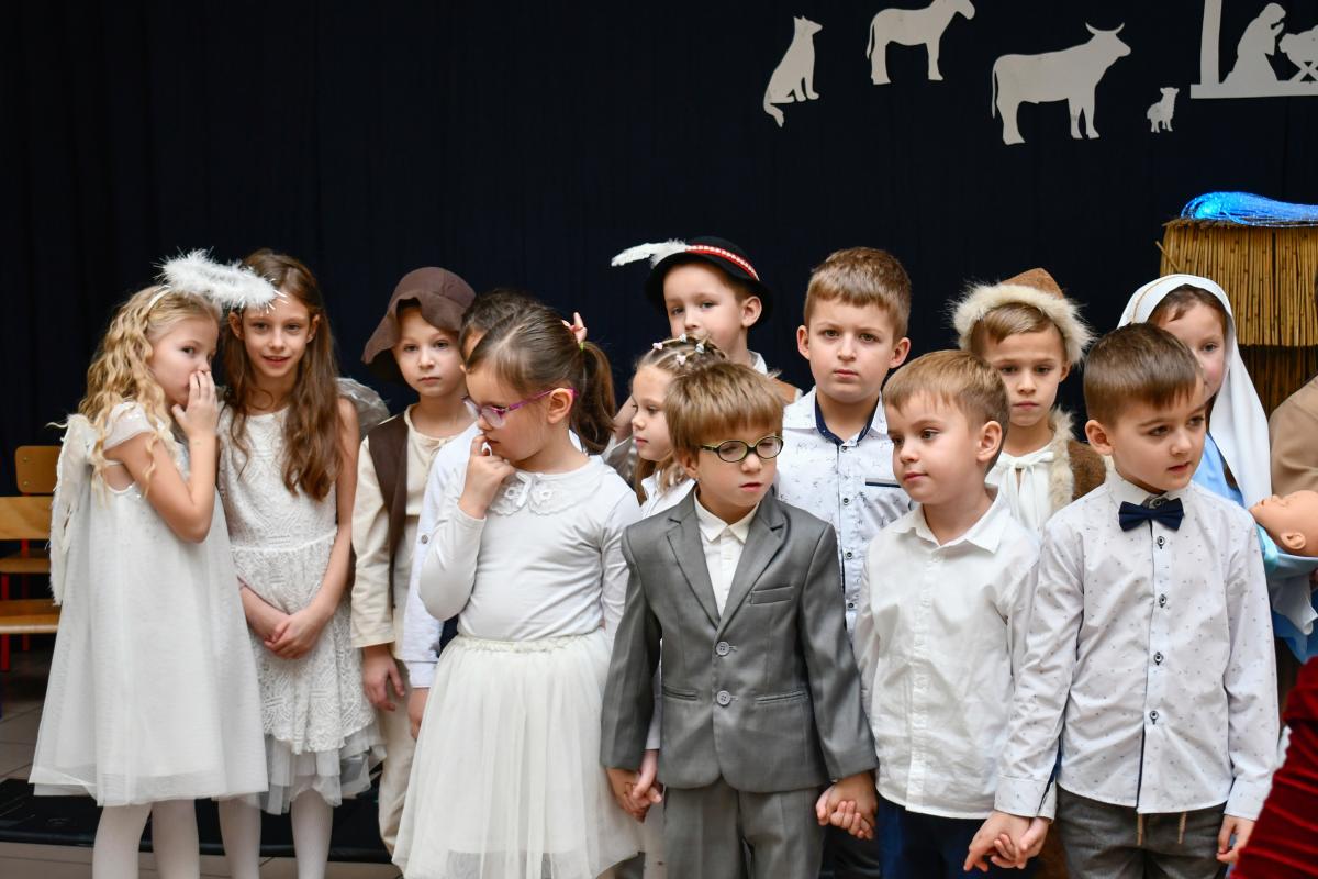 Był to naprawdę magiczny czas! Dzieci wspaniale przygotowały się do swoich ról i wcieliły się w postaci biblijne. Mogliśmy podziwiać piękne stroje i pełną radości twarze naszych najmłodszych aktorów. Maryja i Józef, aniołki, pasterze, królowie oraz chór, wszyscy wspaniale zabrali nas w podróż do Betlejem.