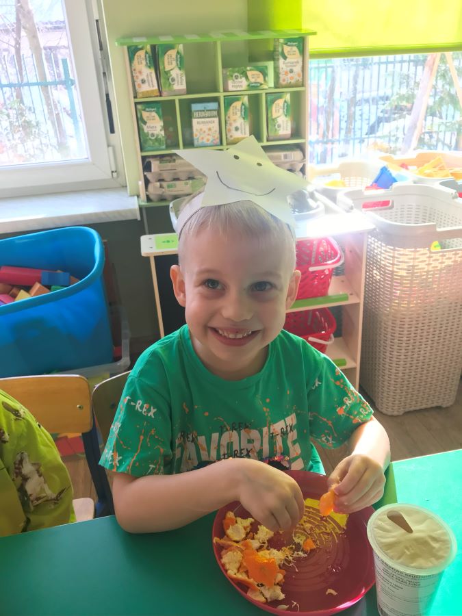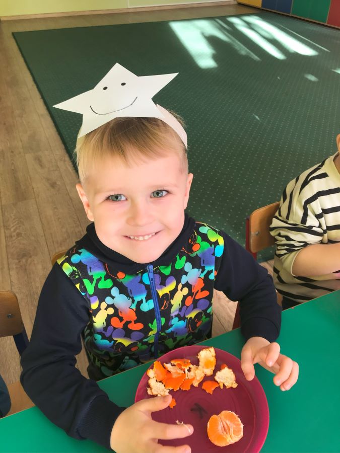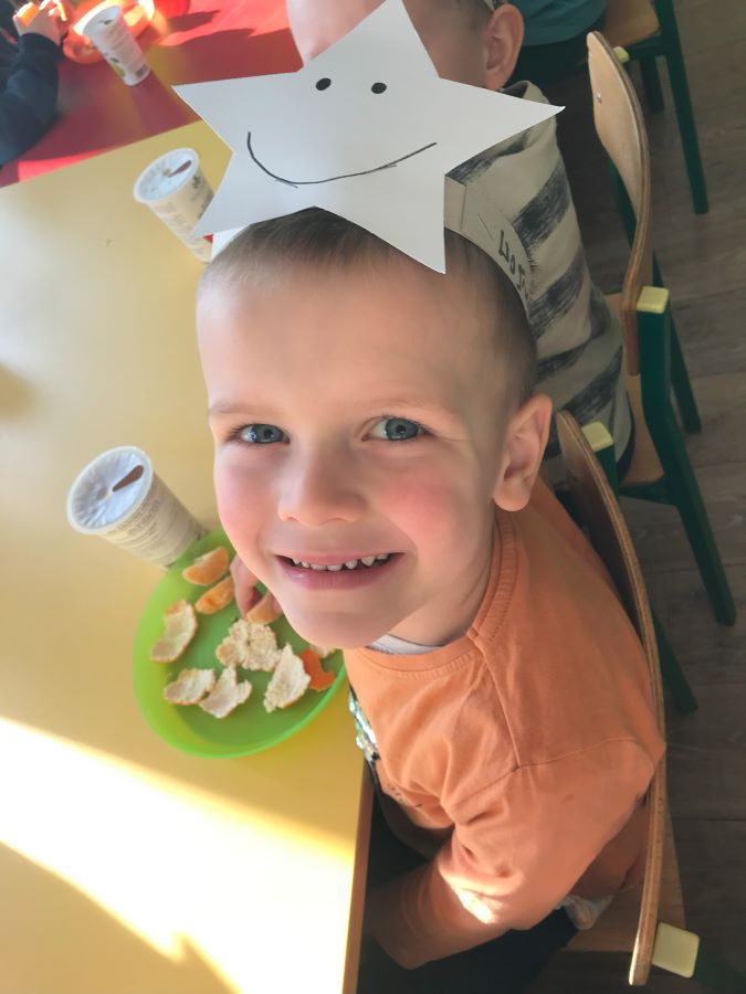 W styczniu wszystkie przedszkolaki w ramach programu „Na talerzu zdrowo i kolorowo” witały zimową porę roku. Były zimowe zagadki, ciekawostki, wspólne odtańczenie „Zimowego walczyka” oraz degustacja zdrowych zimowych cytrusów i soków owocowych. Zimą zapachniało mandarynkami u „Leśnych Skrzatów”.