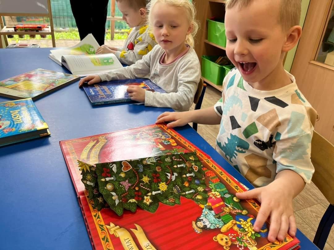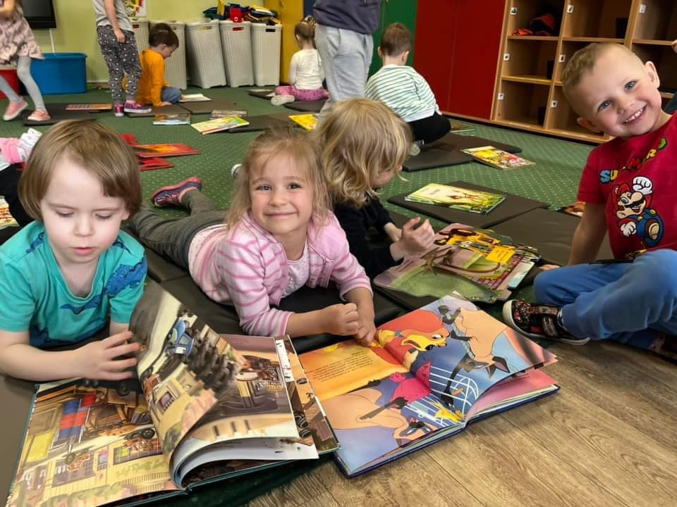 W kwietniu 2024 obchodziliśmy Dzień Książki. Słuchaliśmy czytanych bajek, poznawaliśmy bajkowe postacie, układaliśmy w grupach bajkowe puzzle, oglądaliśmy i tworzyliśmy własne książki.
