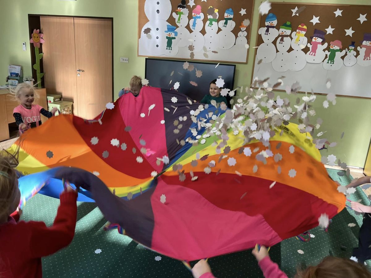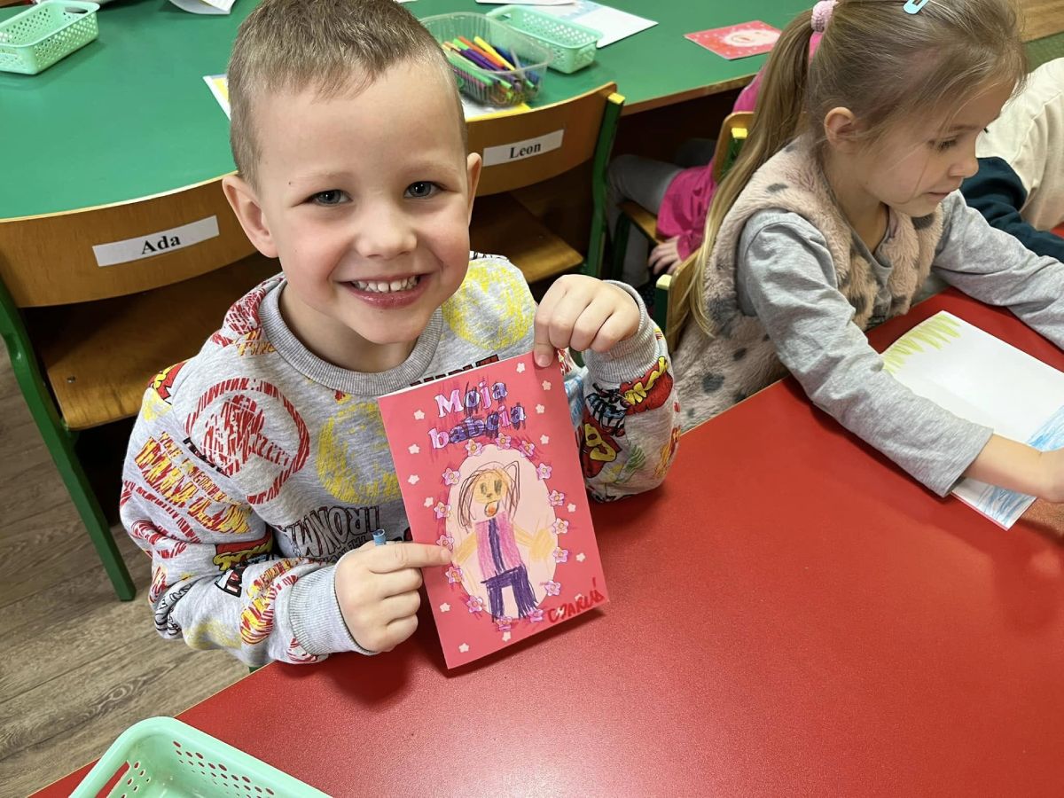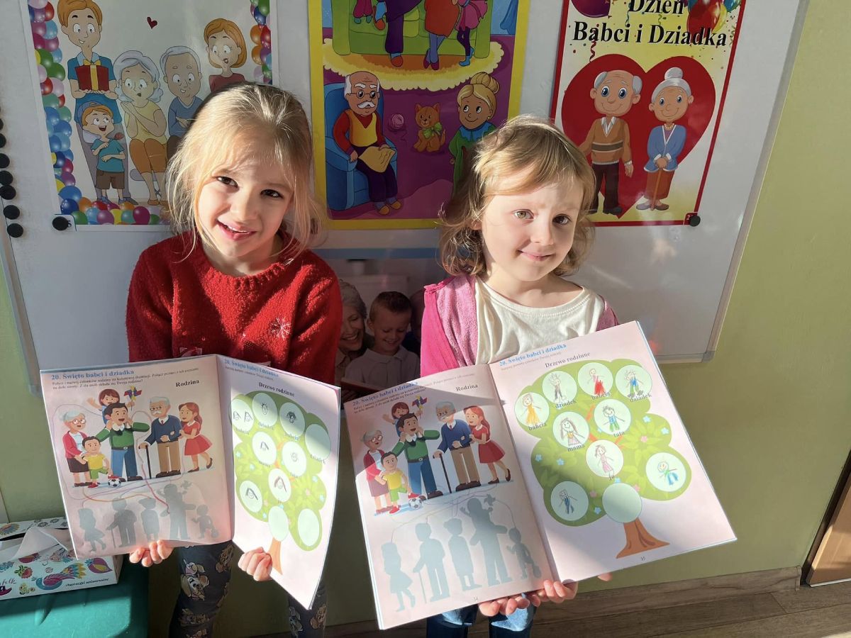 Od 3-02 do 7-02 - Rozmawialiśmy o rodzinie, pomaganiu najbliższym, wykonaliśmy drzewa genealogiczne, portrety oraz upominki dla babć i dziadziusiów, układaliśmy zdania o babciach i dziadziusiach oraz liczyliśmy słowa w zdaniach, ćwiczyliśmy dodatkową zimową gimnastykę w ramach zajęć unijnych ze śnieżynkami, chusteczkami, tunelami oraz laskami gimnastycznymi.