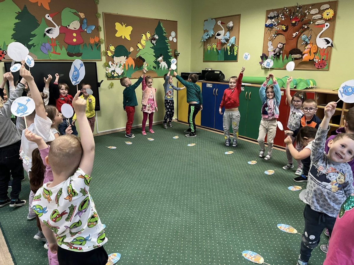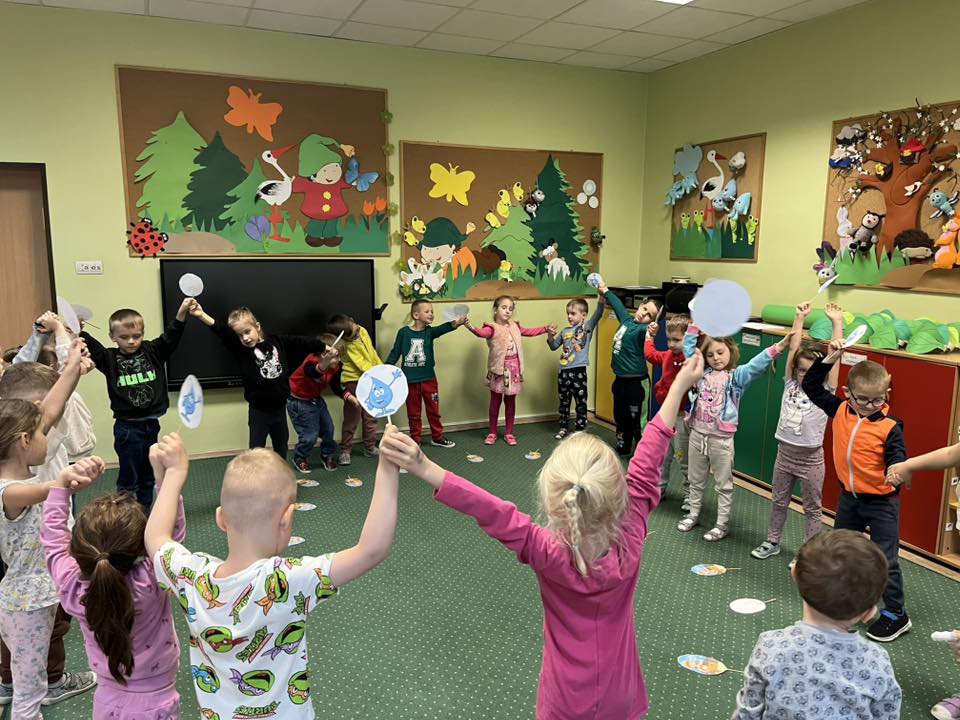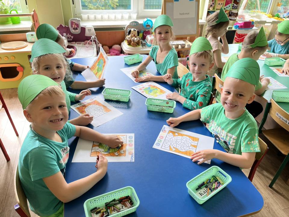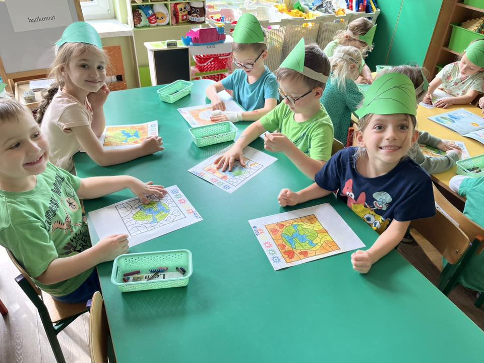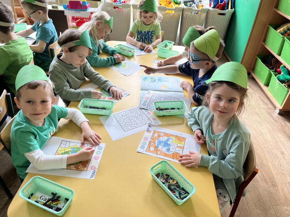 Układaliśmy zdania, liczyliśmy słowa, odróżnialiśmy prawdę i fałsz. Śpiewaliśmy piosenkę „Zielony dom”, słuchaliśmy opowiadania o wędrującej kropelce i Królowej mórz. Kwiatuszki o Planetę Ziemię dbają i bardzo ją kochają.