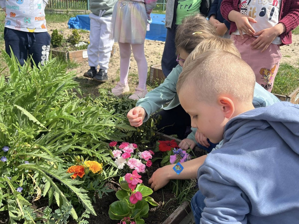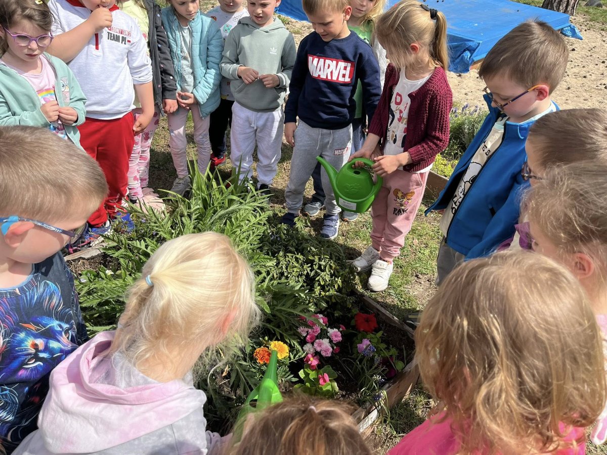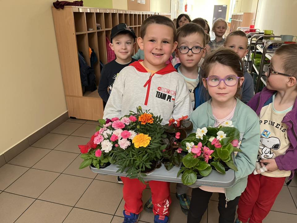 Układaliśmy zdania, liczyliśmy słowa, odróżnialiśmy prawdę i fałsz. Śpiewaliśmy piosenkę „Zielony dom”, słuchaliśmy opowiadania o wędrującej kropelce i Królowej mórz. Kwiatuszki o Planetę Ziemię dbają i bardzo ją kochają.