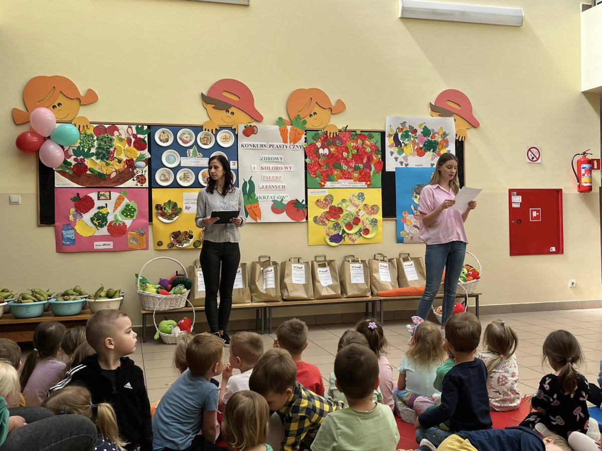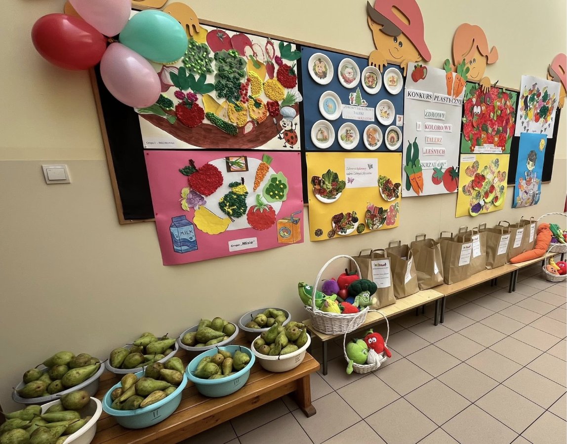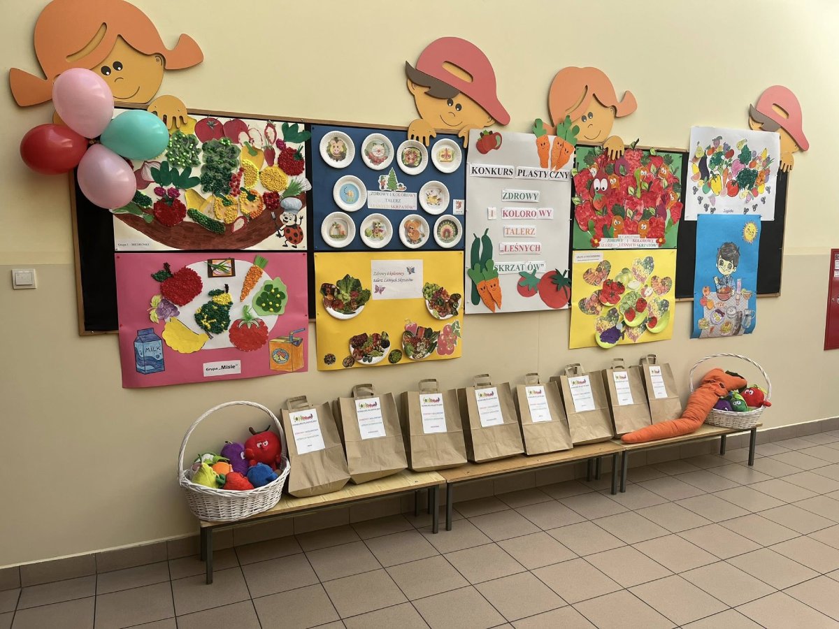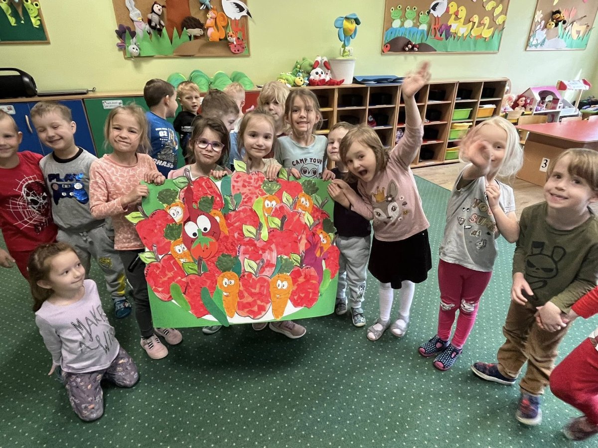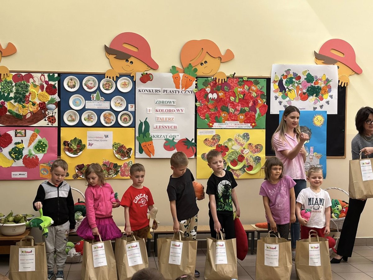 Celem konkursu było kształtowanie prawidłowych nawyków żywieniowych, zachęcanie do spożywania zdrowych posiłków, zjadania warzyw i owoców. Wszystkie grupy wykonały piękne prace wspólne. Nagrodą w konursie były pyszne owoce, zdrowe desery oraz puzzle dla wszystkich grup.