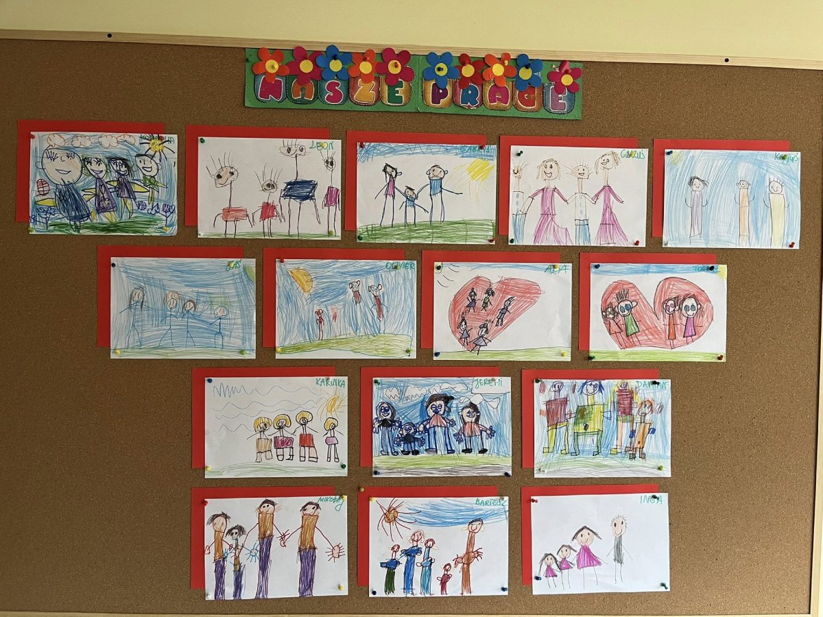 Rozmawialiśmy o rodzinie, obowiązkach domowych, pomaganiu rodzicom, wspólnym spędzaniu czasu, rysowaliśmy portrety rodziny, wycinaliśmy, kreśliliśmy po śladzie, malowaliśmy farbami, liczyliśmy kwiaty dla mamy, wykonaliśmy również upominki dla najbliższych.